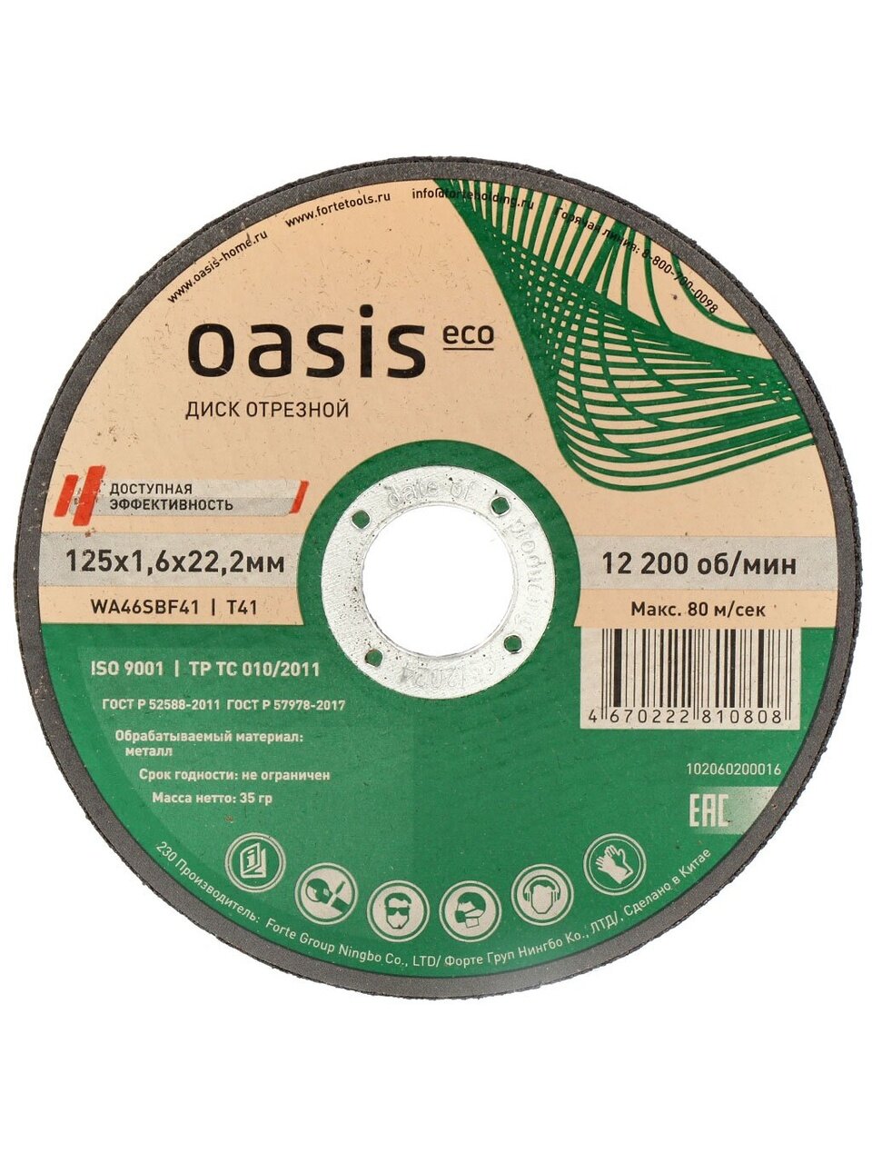 Круг отрезной по металлу Oasis Eco d125х1,6 мм — точный рез, долговечность и безопасность для профессионалов и домашних мастеров. Экономия времени и ресурсов!