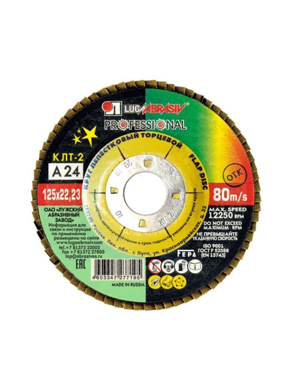 Вы можете приобрести «Круг лепестковый торцевой КЛТ2 для УШМ, LugaAbrasiv, диаметр 125 мм, посадочный диаметр 22 мм, зернистость A24, шлифовальный» и другие товары в нашем интернет-магазине в Астрахани по низким ценам и с бесплатным самовывозом.