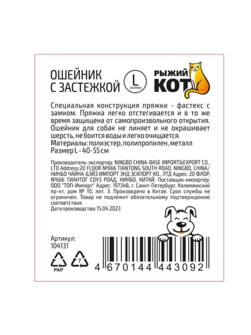 Вы можете приобрести «Ошейник с застежкой, для животных, размер L, Рыжий кот, 40-55 см, черный» и другие товары в нашем интернет-магазине в Серпухове по низким ценам и с бесплатным самовывозом.