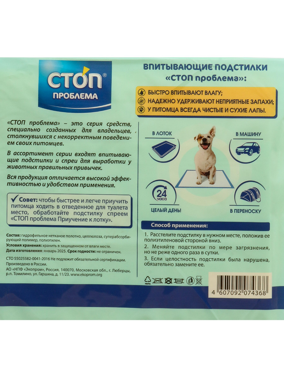 Одноразовые пеленки для домашних животных «Стоп Проблема» — это удобное решение для поддержания гигиены в доме и на даче. Благодаря гелевому наполнителю влага мгновенно превращается в гель, что предотвращает появление неприятных запахов и защищает полы от протеканий. Часто спрашивают: «Как использовать пеленки для собак и кошек?» — просто разложите пеленку в нужном месте, и ваш питомец быстро привыкнет к новому туалету.