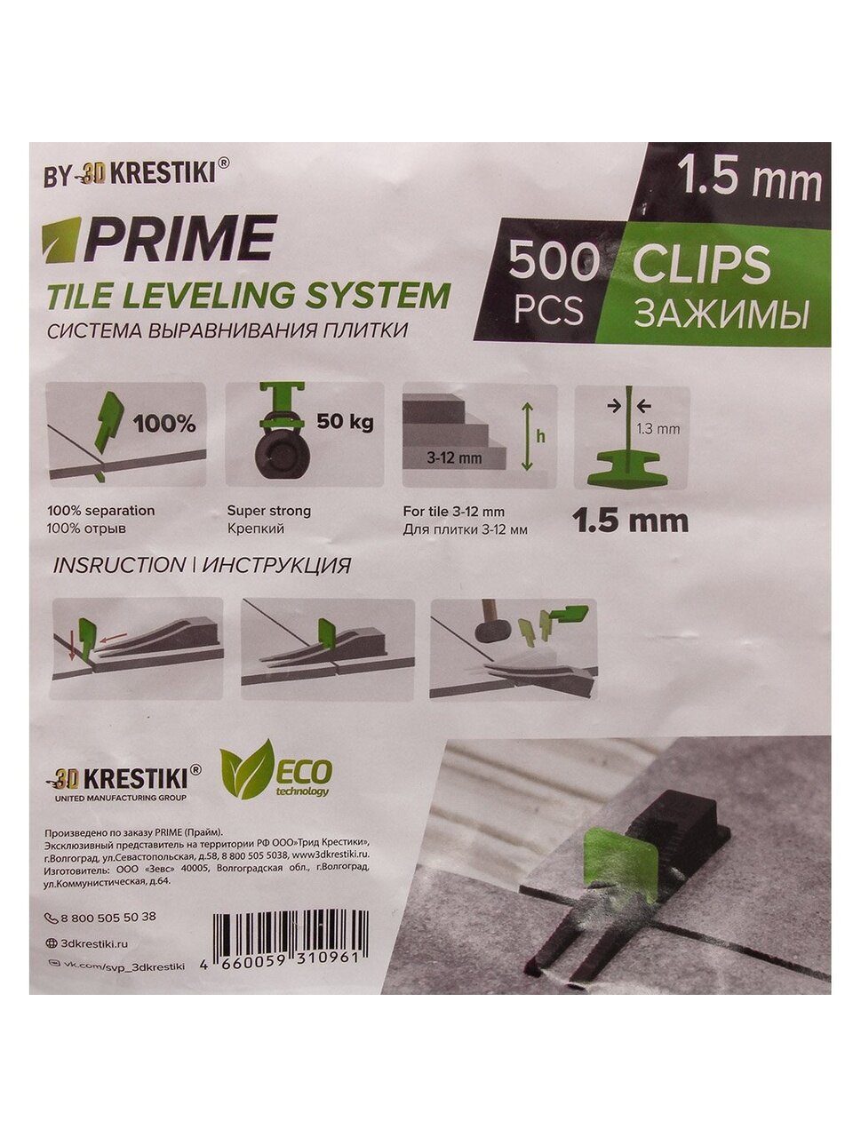 Зажим для выравнивания плитки 1,5 мм, 500 шт, СВП Prime, 00-00002083 — идеальное решение для аккуратной и быстрой укладки плитки на полу и стенах. Современные материалы для ремонта требуют точности, и этот зажим поможет добиться ровной поверхности без лишних усилий. Благодаря специальной конструкции обеспечивается надежная фиксация плитки с минимальным зазором в 1,5 мм, что гарантирует эстетичный результат и долговечность покрытия. Комплект из 500 штук позволит выполнить большие объемы работ без необходимости постоянного пополнения расходных материалов.