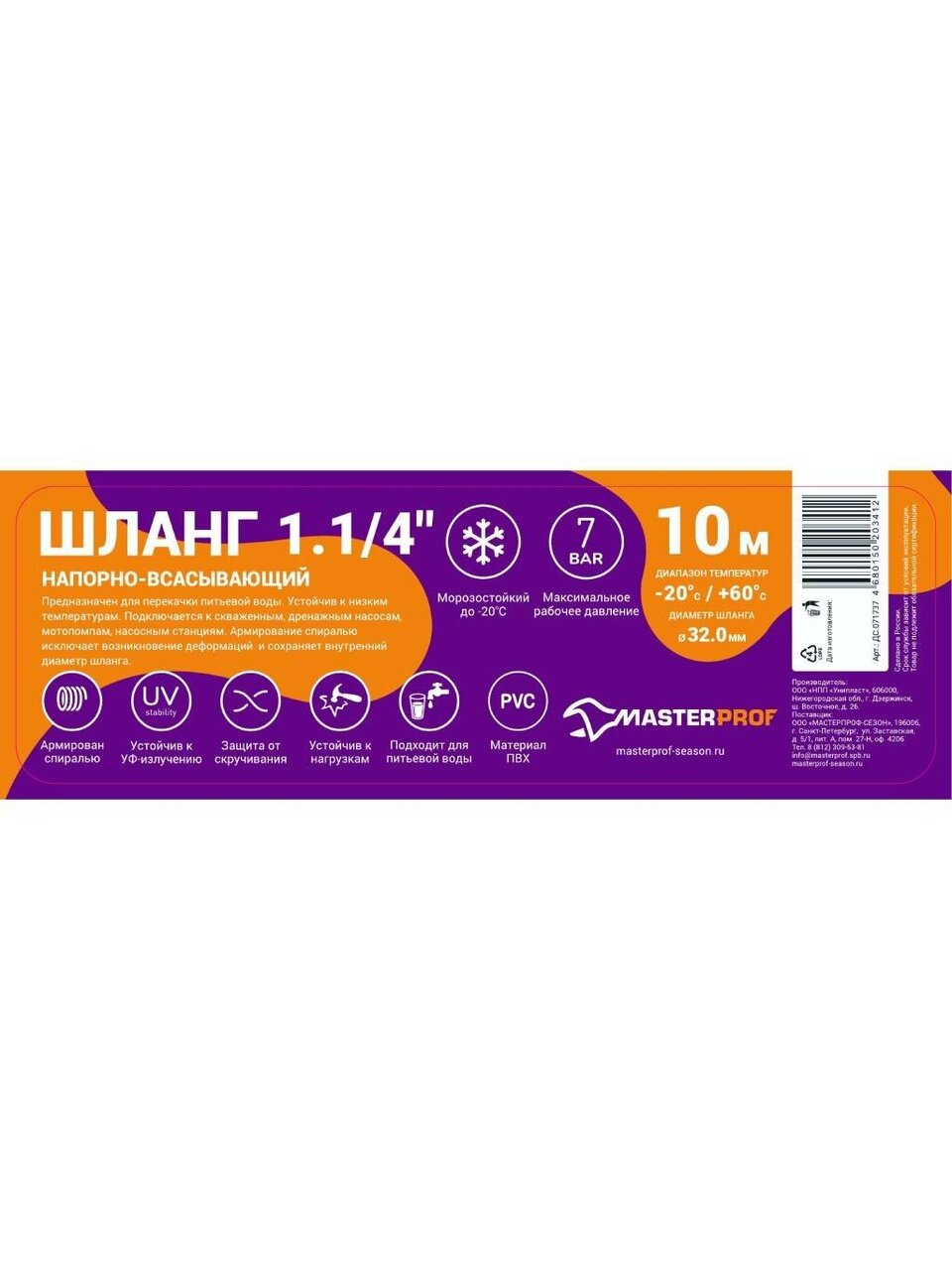 Вы можете приобрести «Шланг напорно-всасывающий, ПВХ, диаметр 32 мм, 7 бар, морозостойкий, MasterProf, 10 м» и другие товары в нашем интернет-магазине в Брянске по низким ценам и с бесплатным самовывозом.