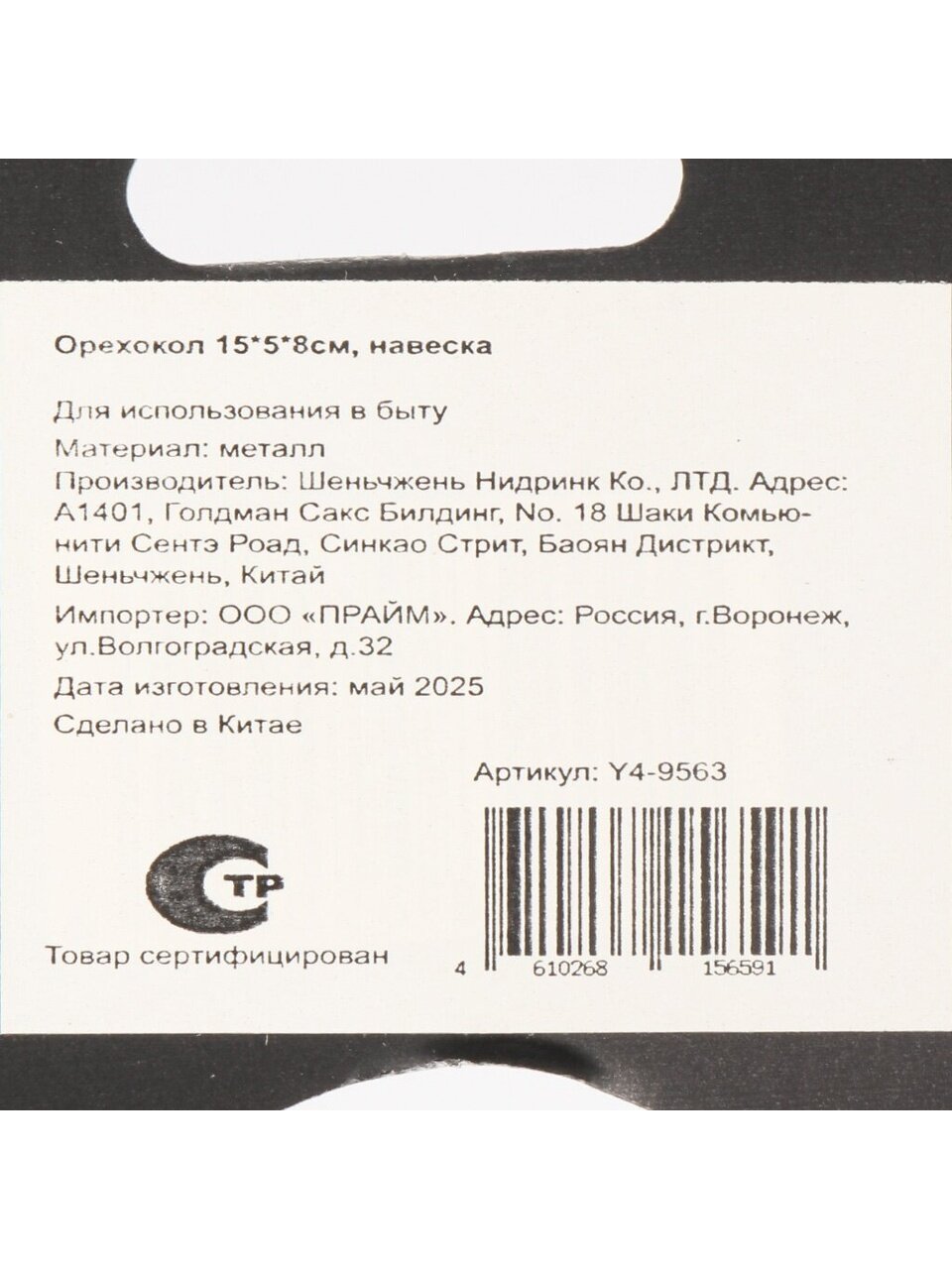 Орехокол металл, см, навеска, серебристо-черный, Y4-9563 — практичный аксессуар для кухни, который облегчает процесс колки орехов. Стильный серебристо-черный дизайн гармонично впишется в любой интерьер. Прочный материал обеспечивает долгий срок службы и надежность. Идеальное решение для приготовления любимых блюд и закусок.
