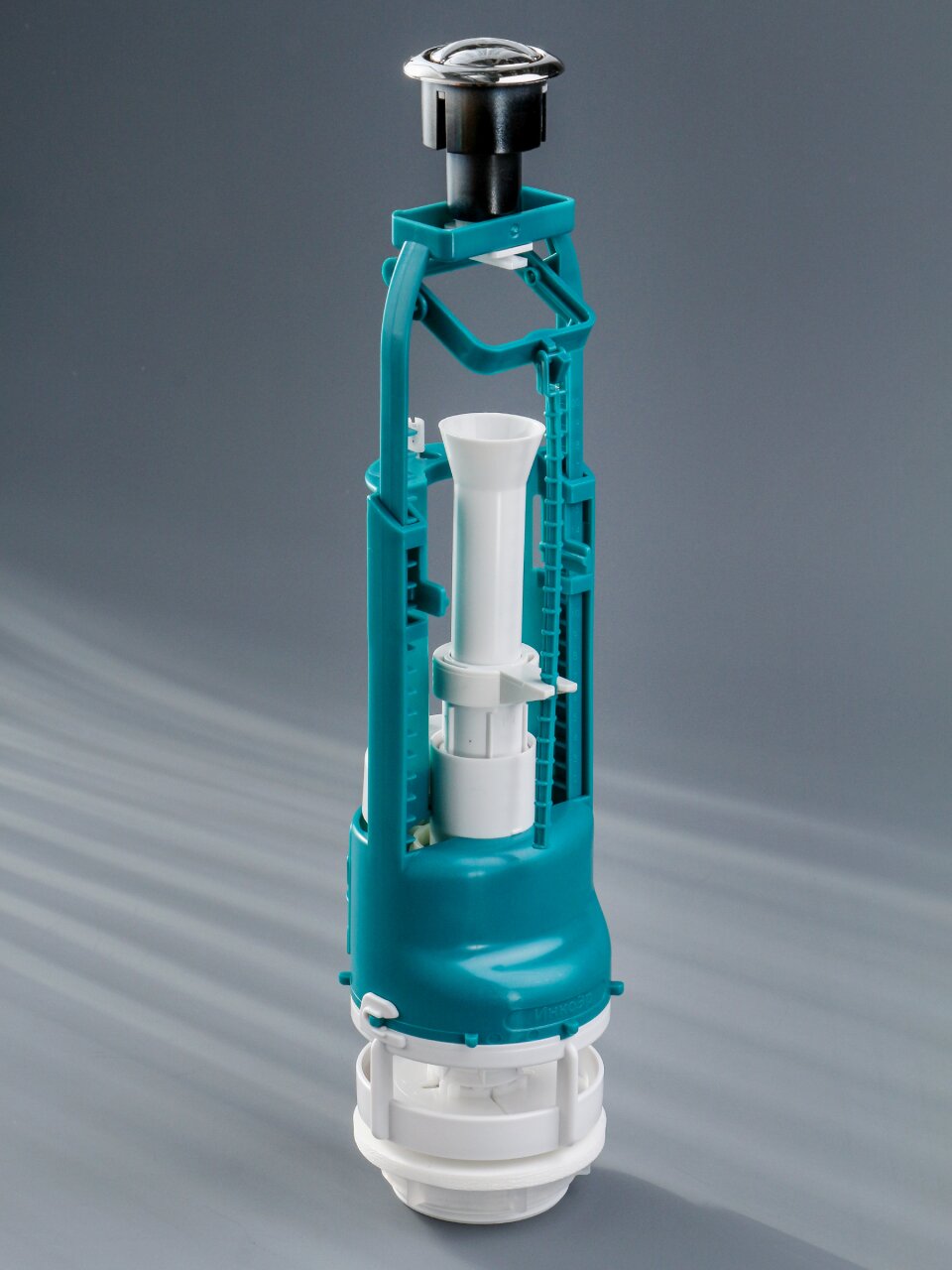 Универсальный сливной клапан СБ2 (3/6л.) кнопочный с двумя режимами слива (для слива всего полезного объема бачка необходимо нажать на большую кнопку смыва, для слива половины объема (зависит от выбранных настроек пользователя) - на малую кнопку).