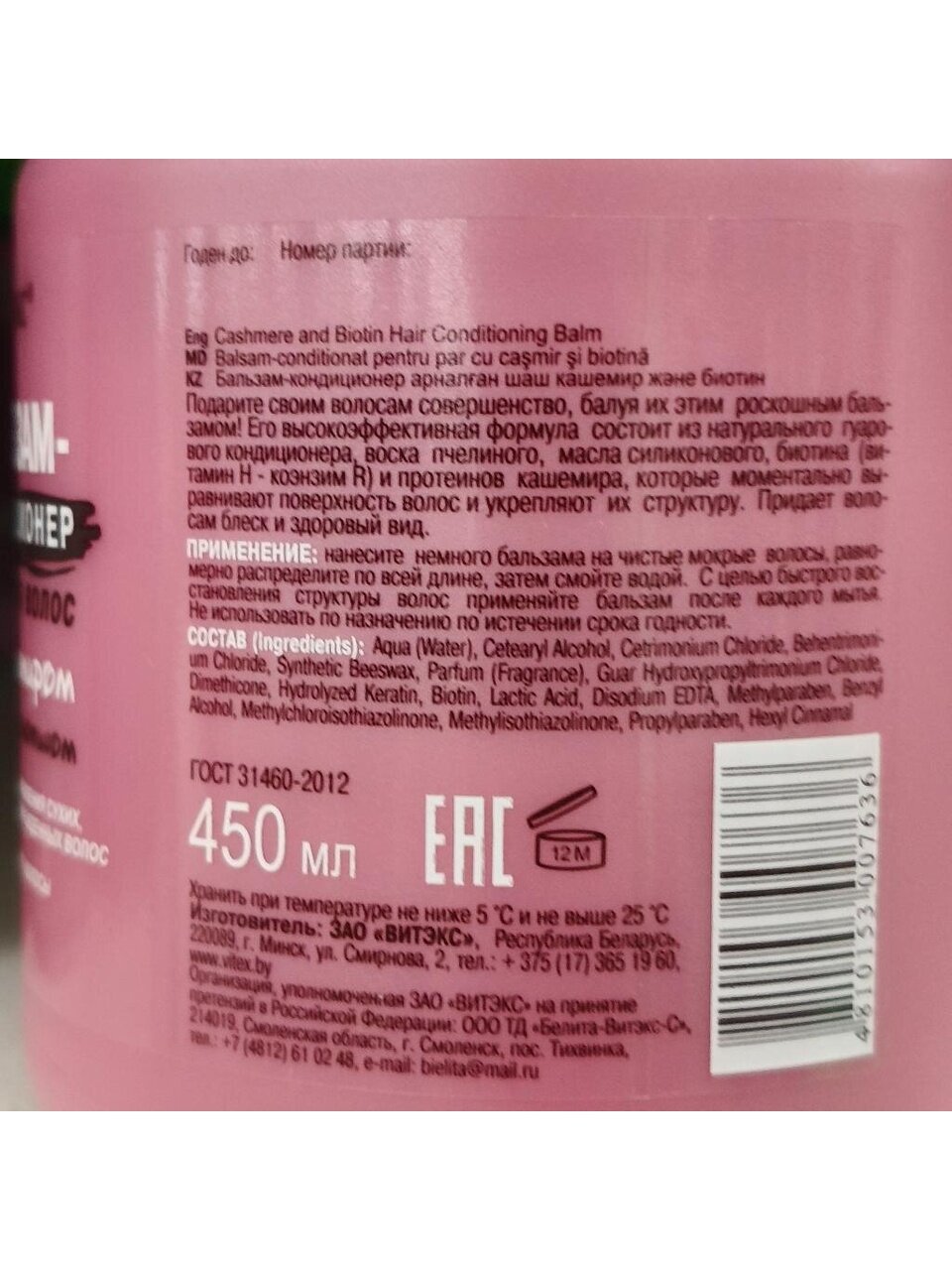 Вы можете приобрести «Бальзам для сухих и поврежденных волос, Вiтэкс, С кашемиром и биотином, восстановление, 450 мл» и другие товары в нашем интернет-магазине в Нижнем Новгороде по низким ценам и с бесплатным самовывозом.