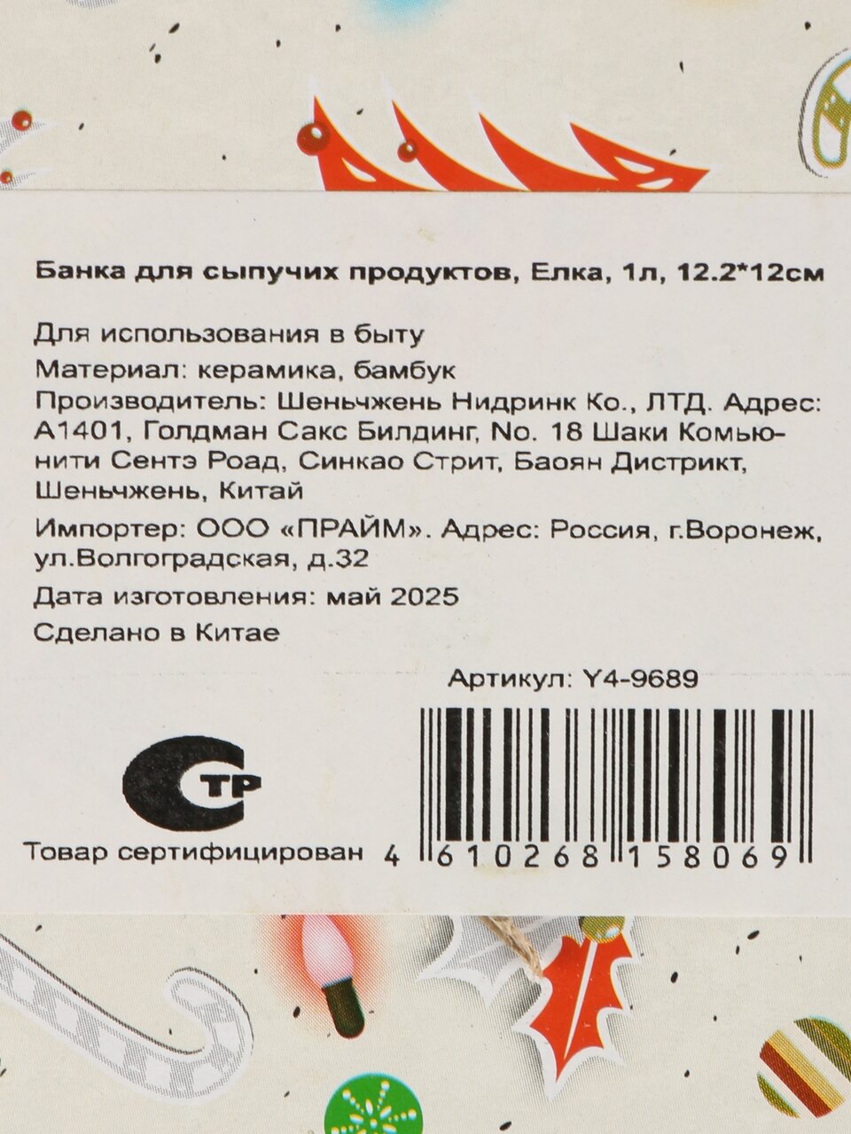 Вы можете приобрести «Банка для сыпучих продуктов, 1л, керамика, бамбук, Елка, 12.2*12см, Y4-9689» и другие товары в нашем интернет-магазине в Брянске по низким ценам и с бесплатным самовывозом.