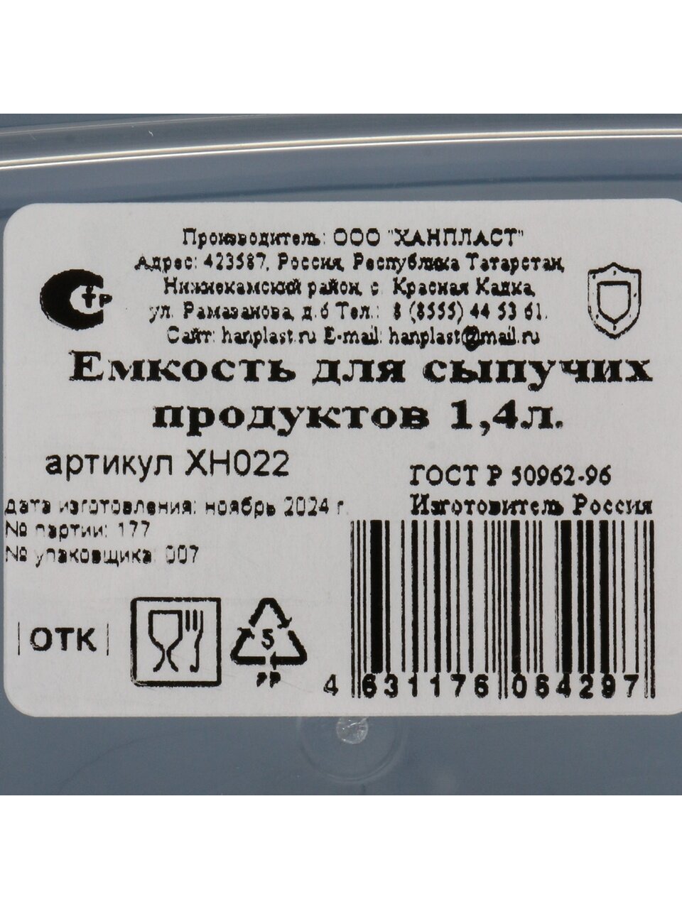 - Оптимальный объём 1.4 л — удобно хранить сахар, крупы, макароны; прочный пластик, подходит для СВЧ и посудомойки