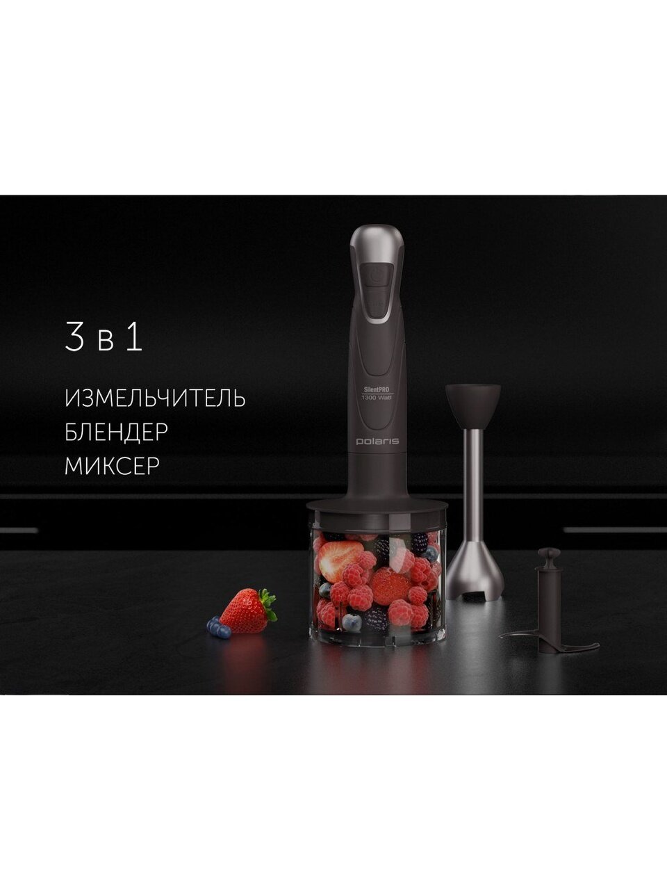 Хозяйкам нравятся многофункциональные приборы, ведь их применение экономит место на кухне и время, потраченное на их мытье после применения. Такой универсальностью обладает погружной блендер Polaris PHB 1384 Silent, сочетающий в себе свойства миксера, измельчителя и блендера.