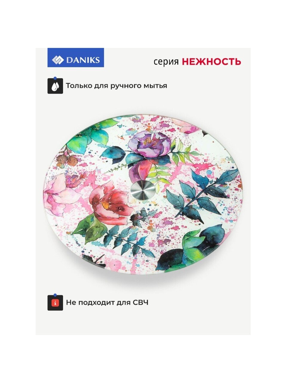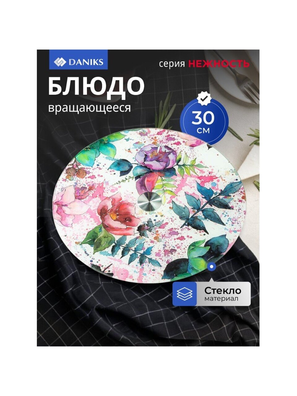 Вращающееся стеклянное блюдо Daniks «Нежность» 30 см — стильная сервировка и удобство подачи закусок для дома, дачи и праздников. Надёжный выбор для подарка.
