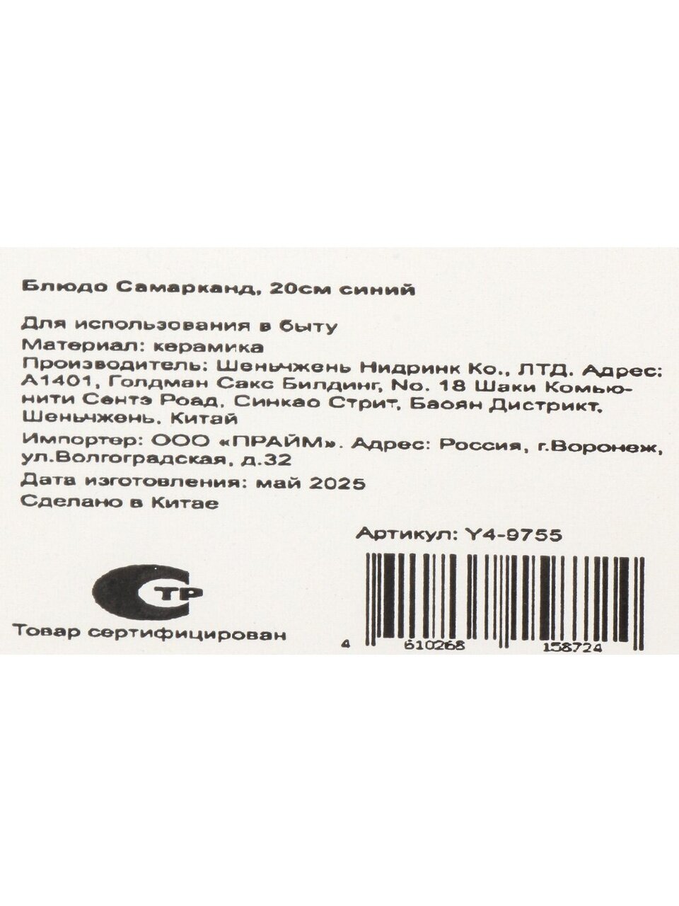 Вы можете приобрести «Блюдо керамика, 20 см, синее, Самарканд, Y4-9755» и другие товары в нашем интернет-магазине в Белгороде по низким ценам и с бесплатным самовывозом.