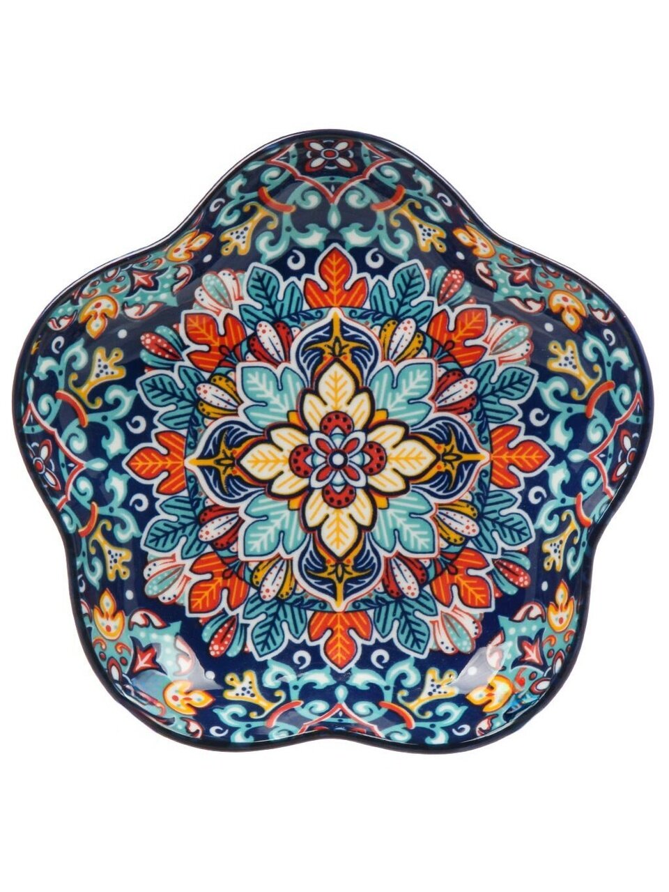 Блюдо керамика 20 см Самарканд — универсальное решение для эффектной подачи: стильный синий цвет, ручная роспись, подходит для СВЧ и посудомоечной машины.