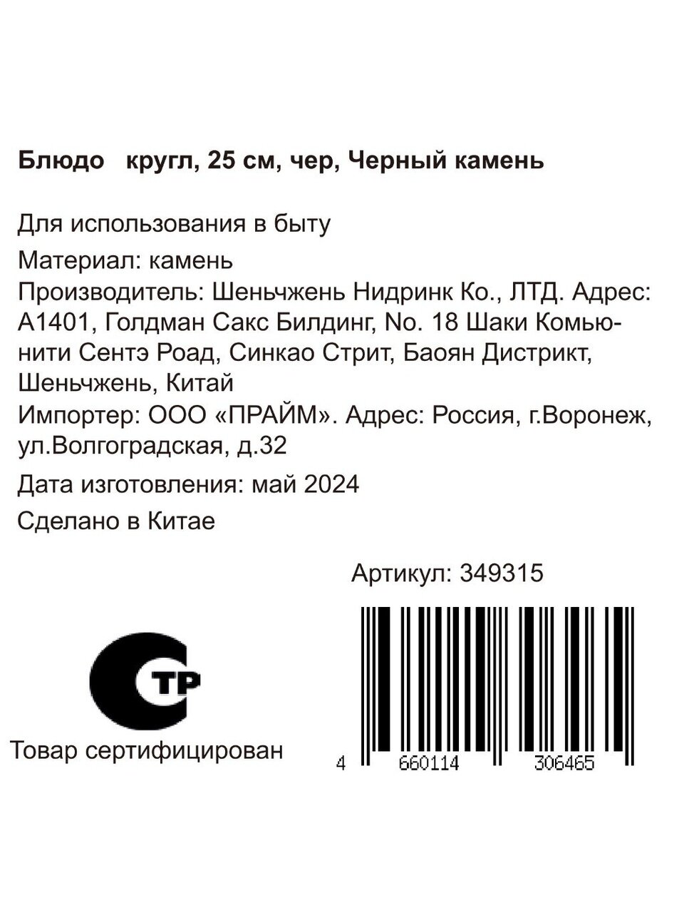Вы можете приобрести «Блюдо камень, круглое, 25 см, черное, Черный камень, Y4-3205» и другие товары в нашем интернет-магазине в Воронеже по низким ценам и с бесплатным самовывозом.