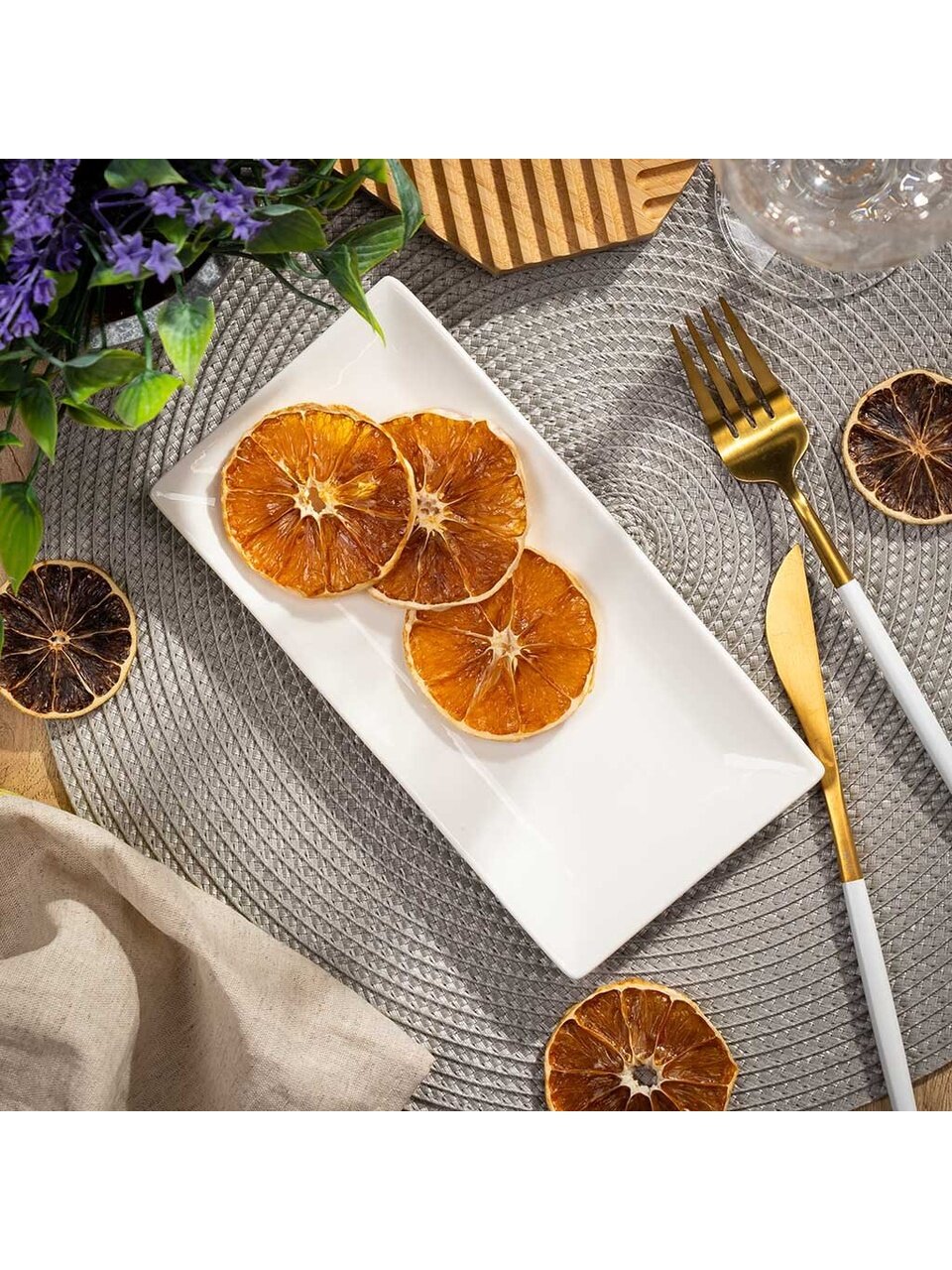 Длина блюда — 20 см, форма прямоугольная. Подходит для подачи закусок, фруктов, сыра, нарезки и сервировки на праздники.