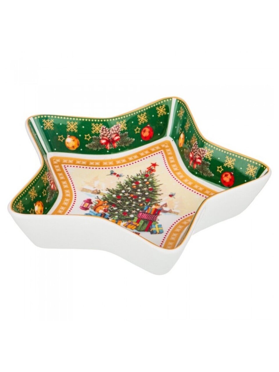 Блюдо Lefard Елка — это не просто посуда, а эффектный элемент декора для новогоднего стола. Благодаря фигурной форме в виде звезды и насыщенному зелёному цвету, изделие гармонично впишется в праздничный интерьер, подчеркнёт индивидуальность вашей сервировки. Премиальный фарфор обеспечивает прочность, устойчивость к сколам, а также экологичность, что важно для сервировки блюд детям и взрослым.