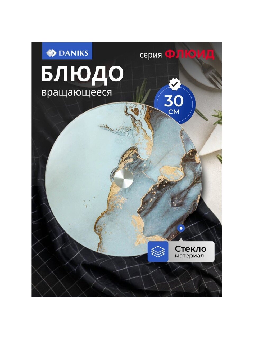 Вращающееся стеклянное блюдо Daniks Флюид 30 см — стильная сервировка для вашего стола: эффект мрамора, удобство подачи, идеальный подарок для дома и дачи.