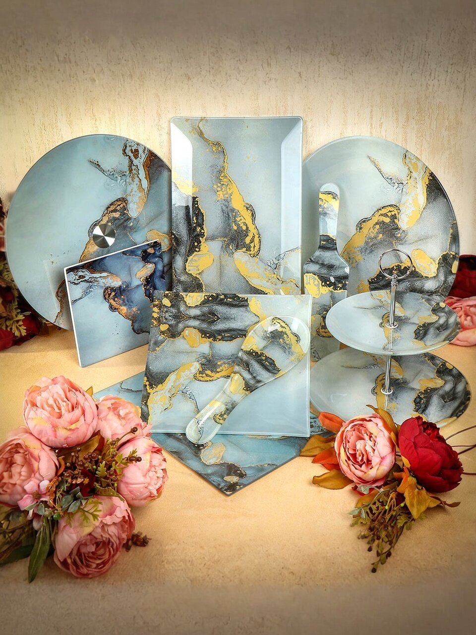 - Прочное стекло 30 см с мраморным рисунком: оптимальный размер для сервировки, устойчиво к царапинам, сохраняет внешний вид надолго