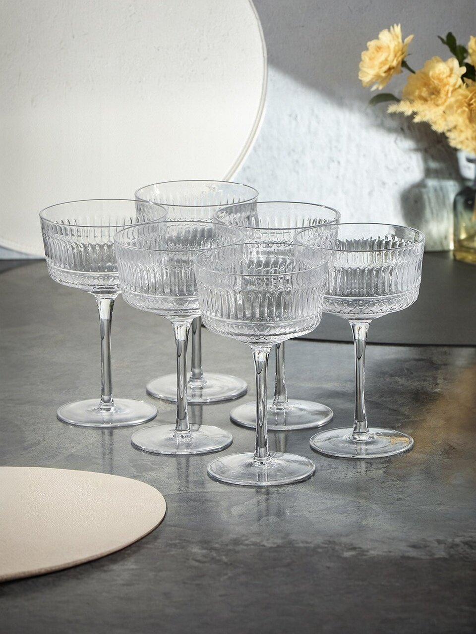 В наборе 6 бокалов, каждый объёмом 260 мл — оптимально для подачи шампанского, игристых вин и коктейлей.