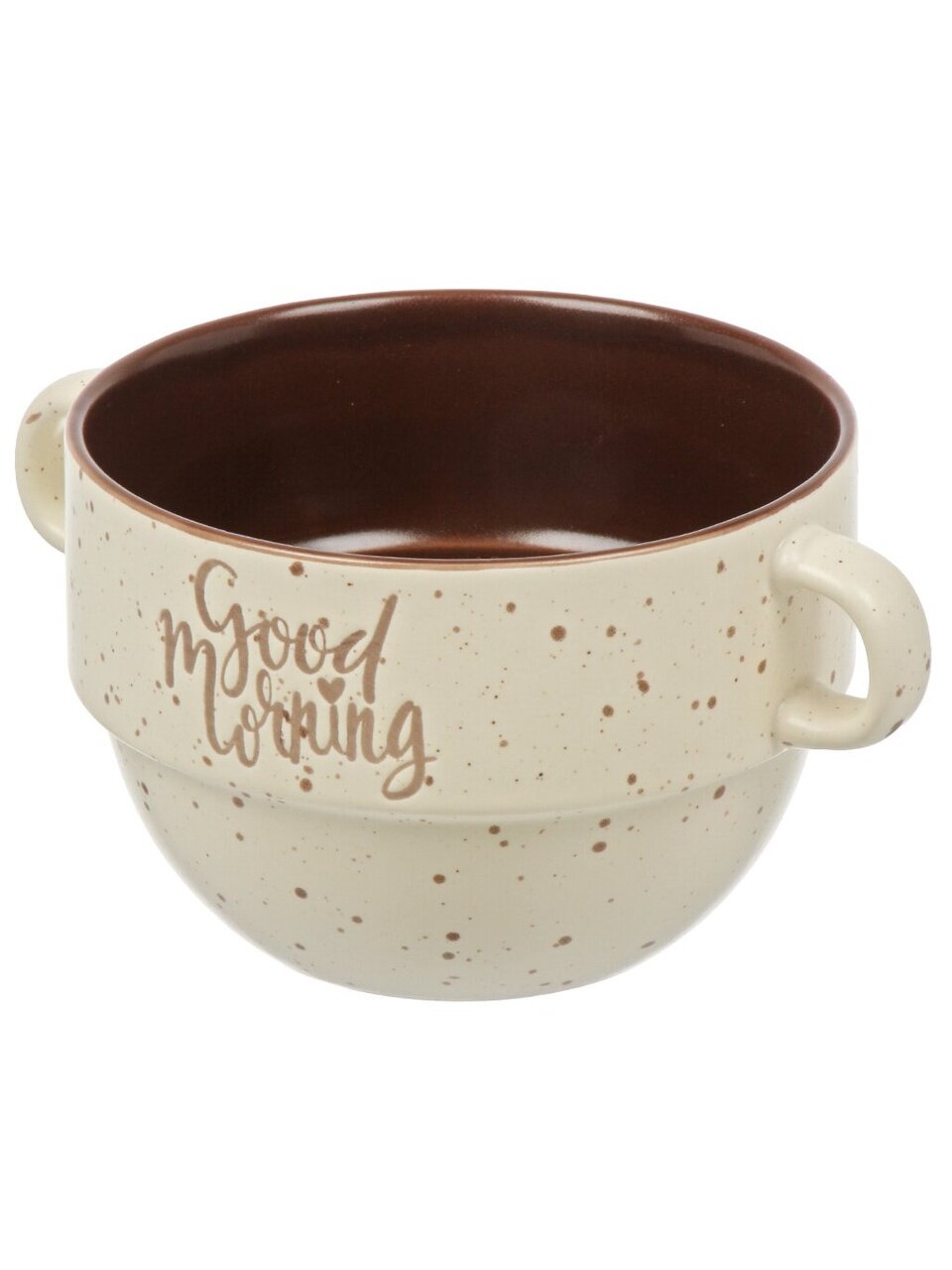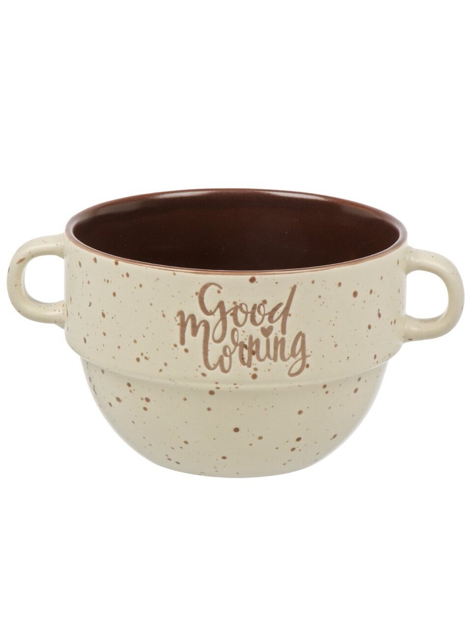 Бульонница с ручками керамика "Доброе утро", 600 мл — стильное решение для уютных завтраков и обедов. Современный дизайн и удобная форма делают посуду отличным выбором для сервировки супов, каш и напитков. Керамика сохраняет тепло, а разнообразие цветов позволяет подобрать вариант под любой интерьер кухни.