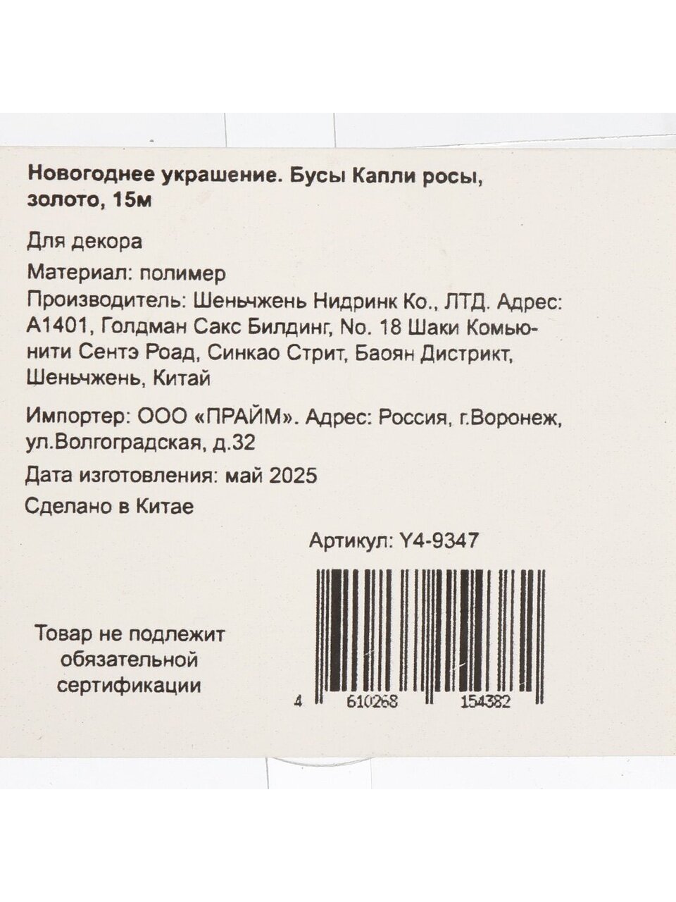 Вы можете приобрести «Бусы новогодние 1500 см, золото, Капли росы, Y4-9347» и другие товары в нашем интернет-магазине в Шахтах по низким ценам и с бесплатным самовывозом.