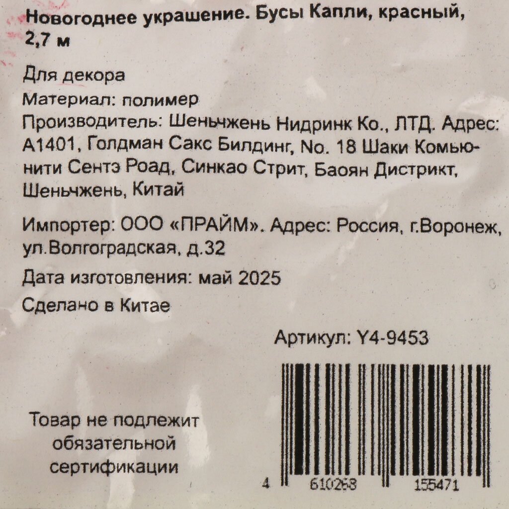 Вы можете приобрести «Бусы новогодние 270 см, красные, Капли, Y4-9453» и другие товары в нашем интернет-магазине в Брянске по низким ценам и с бесплатным самовывозом.