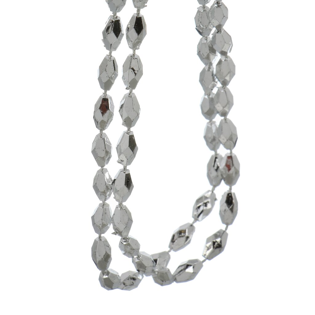 Бусы выполнены из прочного и легкого полимера, что обеспечивает долговечность и удобство в использовании. Серебристое покрытие устойчиво к выцветанию.