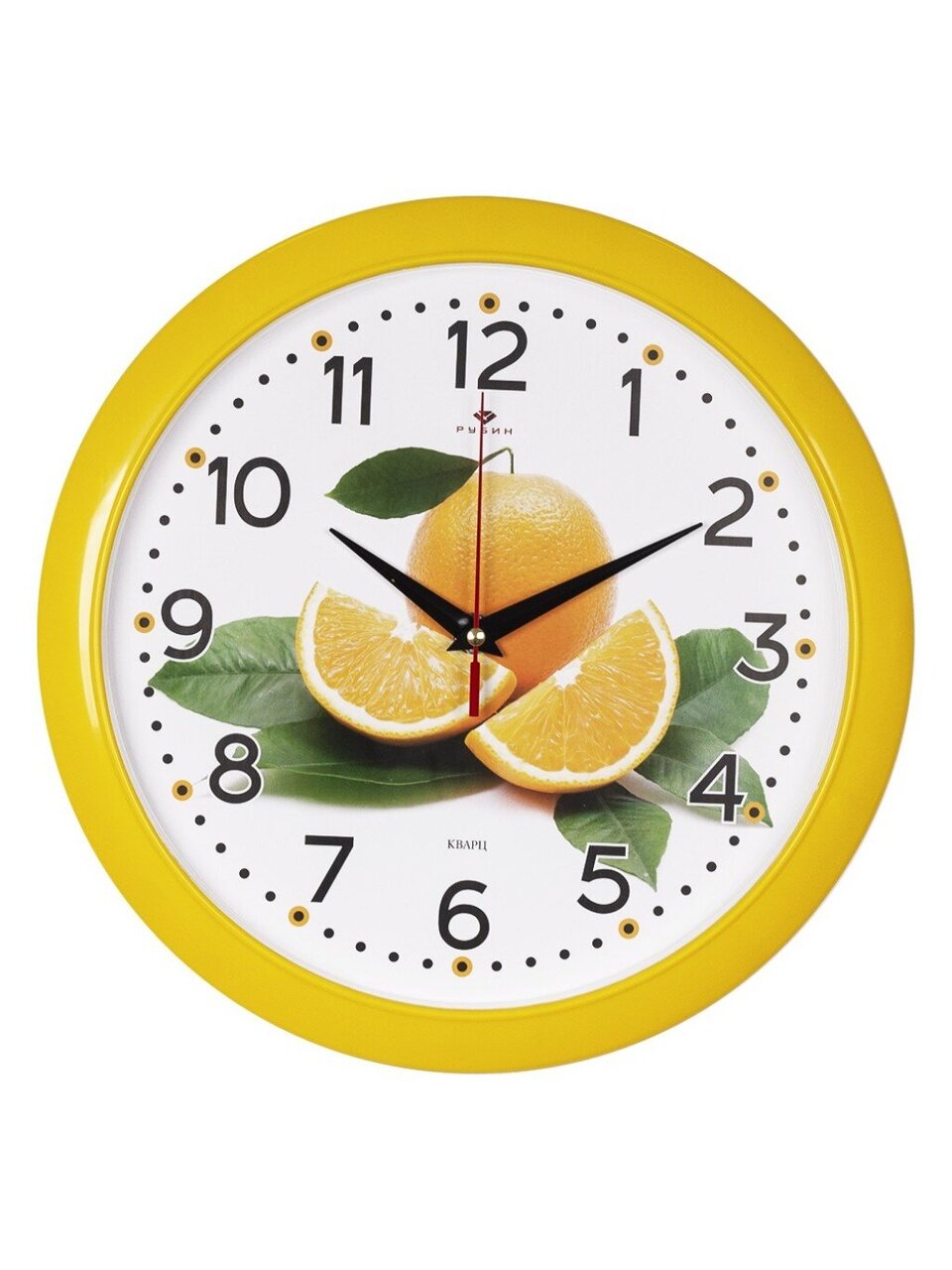 Вы можете приобрести «Часы настенные, кварцевые, 29 см, корпус желтые, круглые, Рубин, Апельсин, 602-228» и другие товары в нашем интернет-магазине в Липецке по низким ценам и с бесплатным самовывозом.