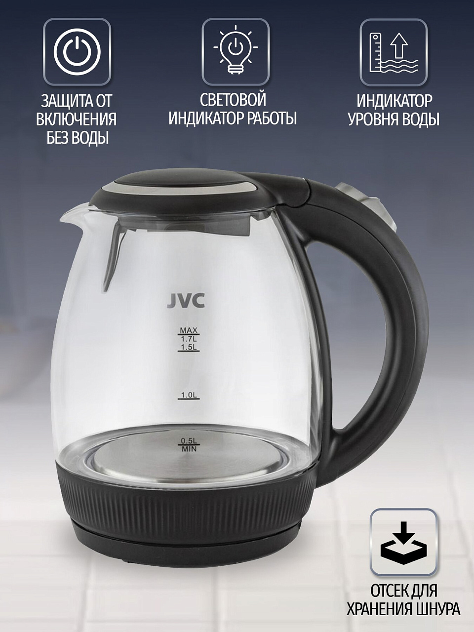 Чайник электрический JVC JK-KE1516 станет незаменимым помощником дома.