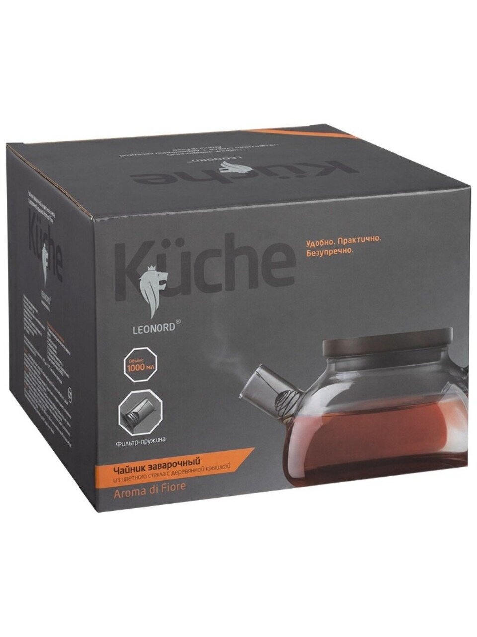 Заварочный чайник из стекла с деревянной крышкой Leonord Aroma di Fiore, объемом 1 литр — изысканное решение для ценителей чая и уюта в доме. Современный дизайн гармонично сочетается с натуральными материалами, придавая интерьеру кухни или гостиной особое очарование. Прозрачное стекло позволяет наблюдать за процессом заваривания, раскрывая богатство цвета и аромата любимого напитка. Деревянная крышка не только добавляет стиль, но и обеспечивает надежную защиту от проливания и сохранение тепла, что особенно важно для комфортного чаепития в кругу семьи или с друзьями.