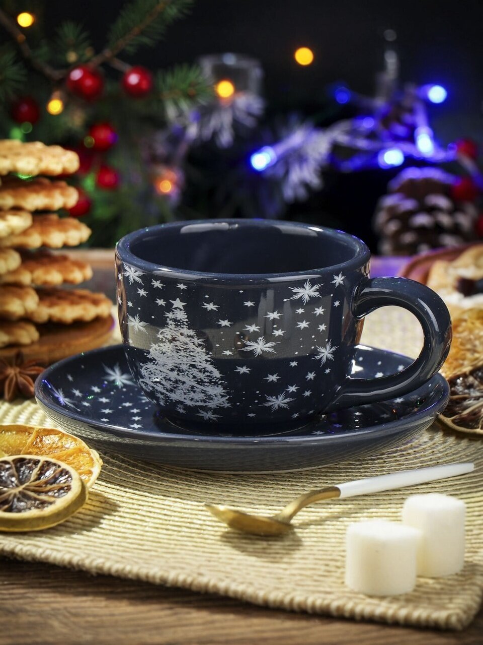 Доломитовый чайный набор с новогодним рисунком - отличный подарок для ваших друзей и близких, который в холодные зимние вечера поможет создать атмосферу праздника и домашнего уюта!