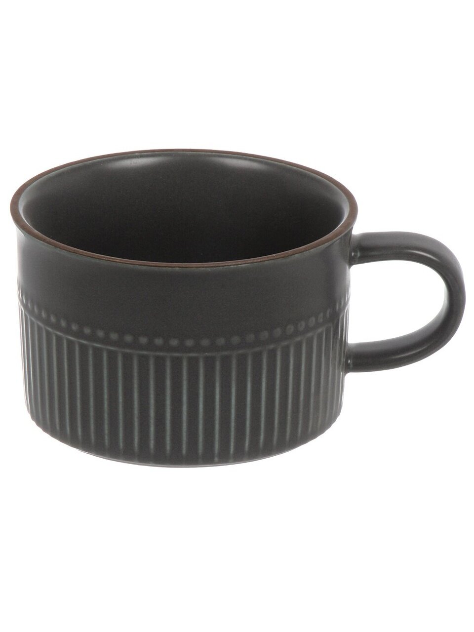 Чашка рассчитана на 280 мл, выполнена из керамики с рельефной однотонной поверхностью, устойчива к механическим и температурным воздействиям.
