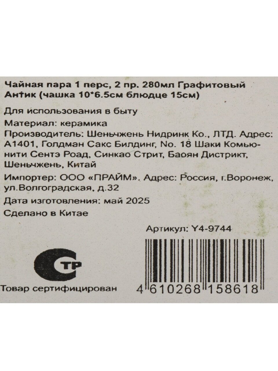 Вы можете приобрести «Чайная пара керамика, 2 предмета, на 1 персону, 280 мл, Графитовый Антик, Y4-9744» и другие товары в нашем интернет-магазине в Ярославле по низким ценам и с бесплатным самовывозом.