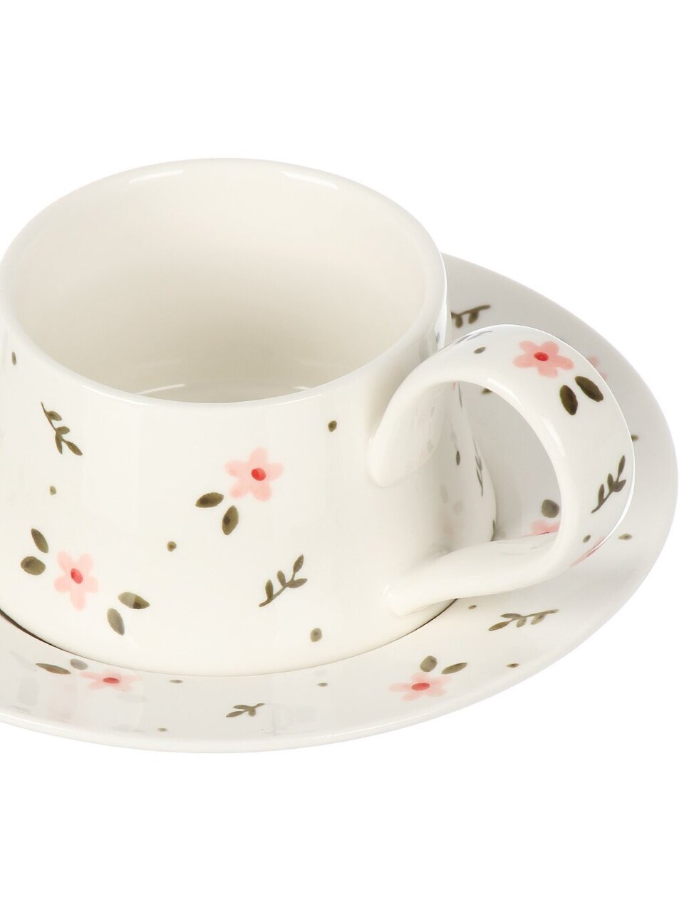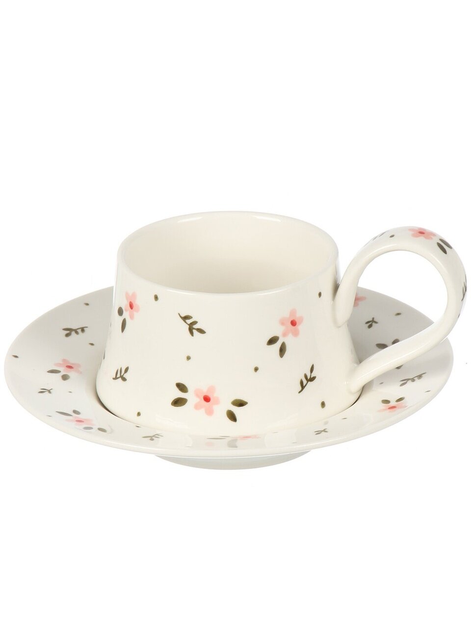 Чайная пара станет не просто элементом сервировки, а настоящим акцентом в интерьере кухни или гостиной. Благодаря ручной росписи и изысканному оформлению, каждый прием чая превращается в особый ритуал, наполняя дом атмосферой уюта и спокойствия. Керамическая посуда идеально подходит для ежедневного использования, а также для торжественных случаев. Белый цвет с розовыми цветочными мотивами гармонирует с любым текстилем и посудой, создавая ощущение свежести и легкости.