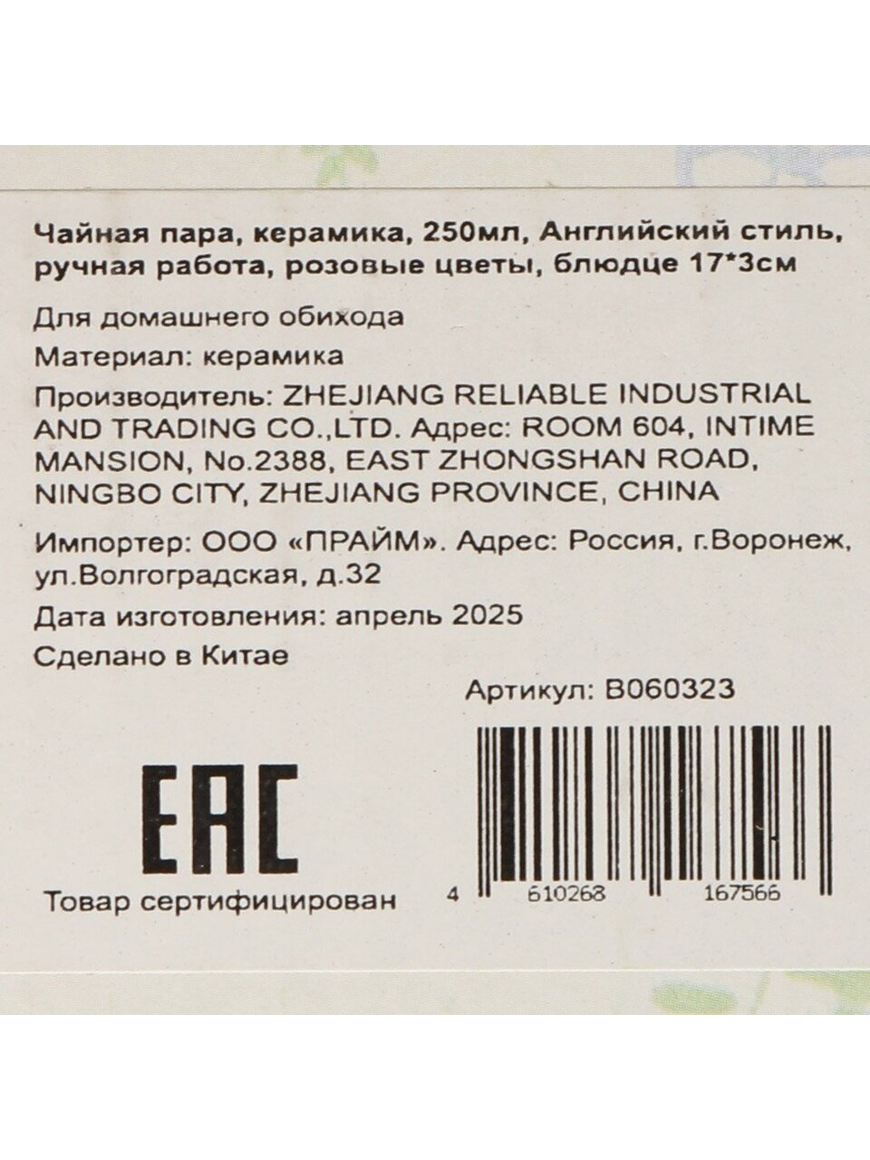 Вы можете приобрести «Чайная пара керамика, 2 предмета, на 1 персону, 250 мл, Английский стиль, розовые цветы, ручная работа, блюдце 17х3 см, B060323» и другие товары в нашем интернет-магазине в Иваново по низким ценам и с бесплатным самовывозом.