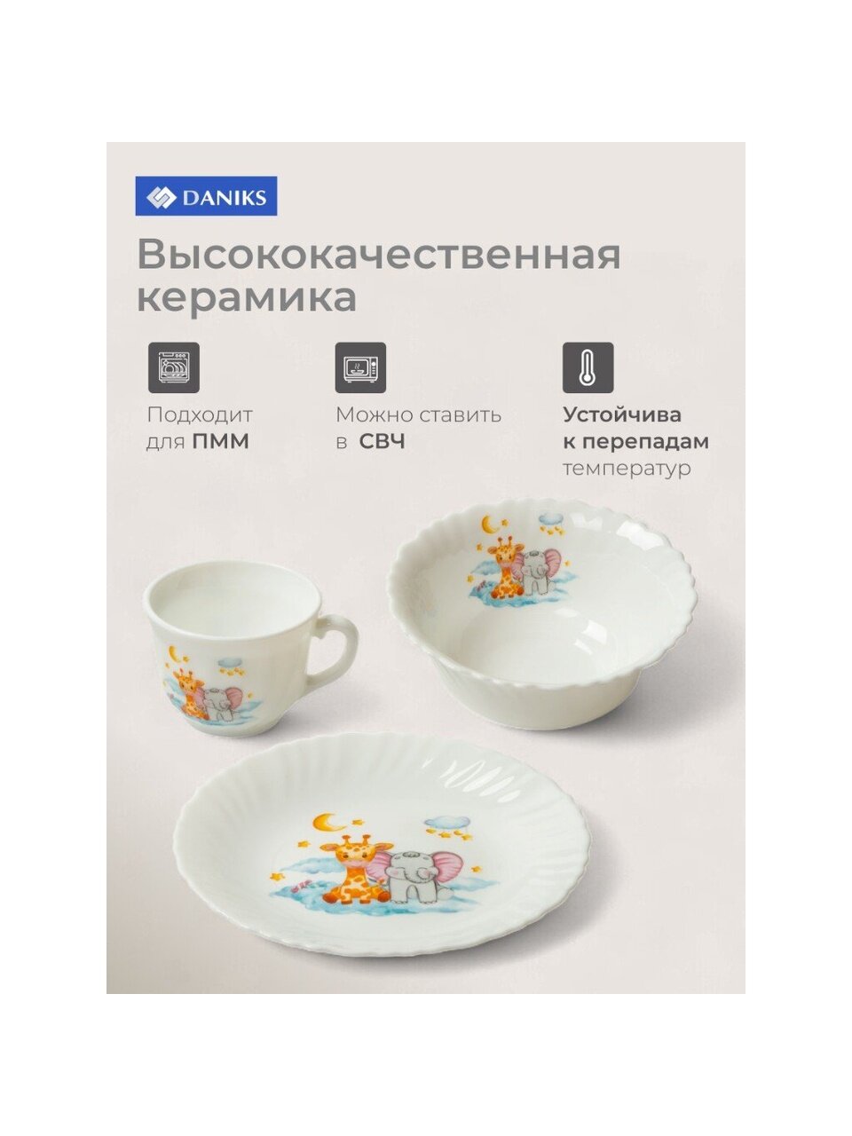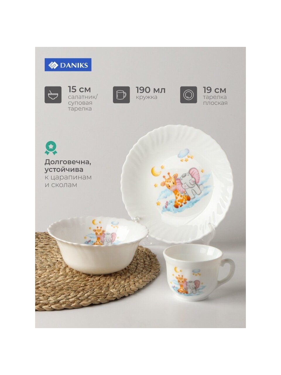 Вы можете приобрести «Набор посуды стеклокерамика, 3 шт, Слоник и Жираф, тарелка 19см, пиала 15см, кружка 190мл, Daniks» и другие товары в нашем интернет-магазине в Клинцах по низким ценам и с бесплатным самовывозом.