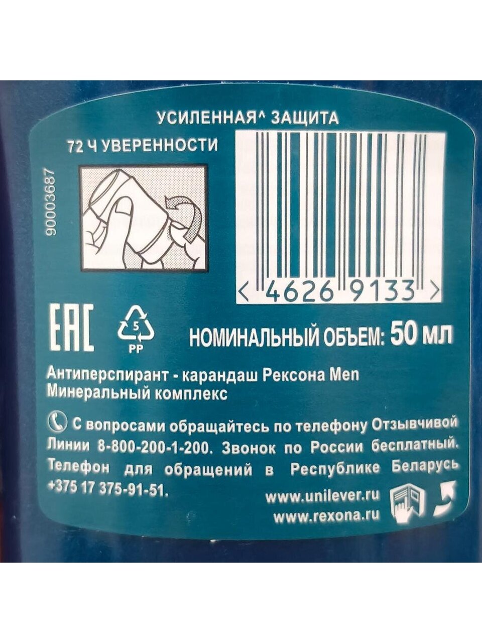 Живите насыщенной жизнью, а защиту от пота и запаха возьмет на себя Rexona Men. Антиперспирант-карандаш Rexona Men Минеральный комплекс, разработанный на основе усиленной эффективности, создает дышащий микробарьер для непревзойденной защиты от пота и запаха на 72 часа. Технология Motionsense активируется при движении, сохраняя свежесть на весь день.