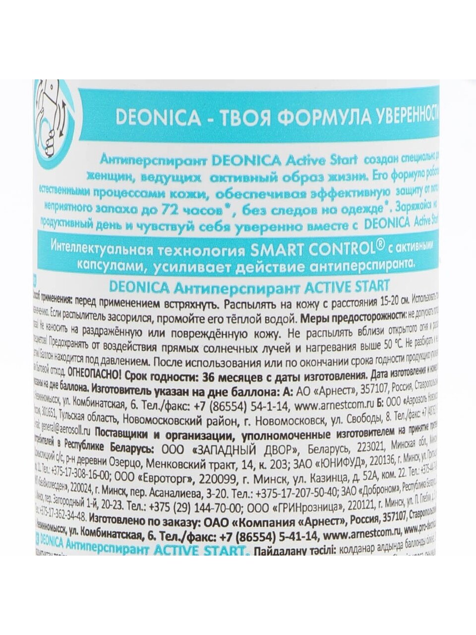 Дезодорант Deonica Active start для женщин: уверенность на весь день, защита от запаха и свежесть даже в активном ритме. 150 мл — экономия и удобство.