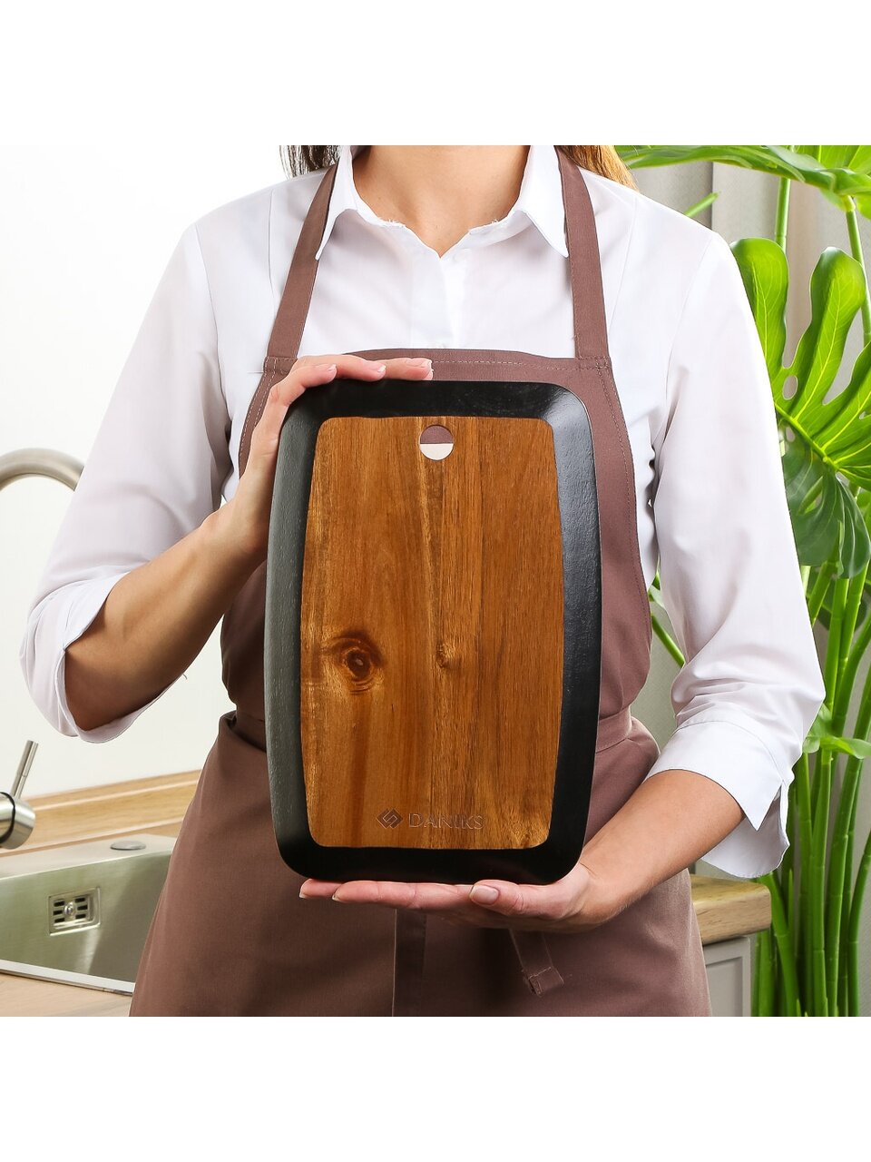 Разделочная доска из акации Daniks 30×20 см — долговечное решение для кухни, дачи и сервировки. Натуральное дерево, удобный размер и подвес — практично и стильно.