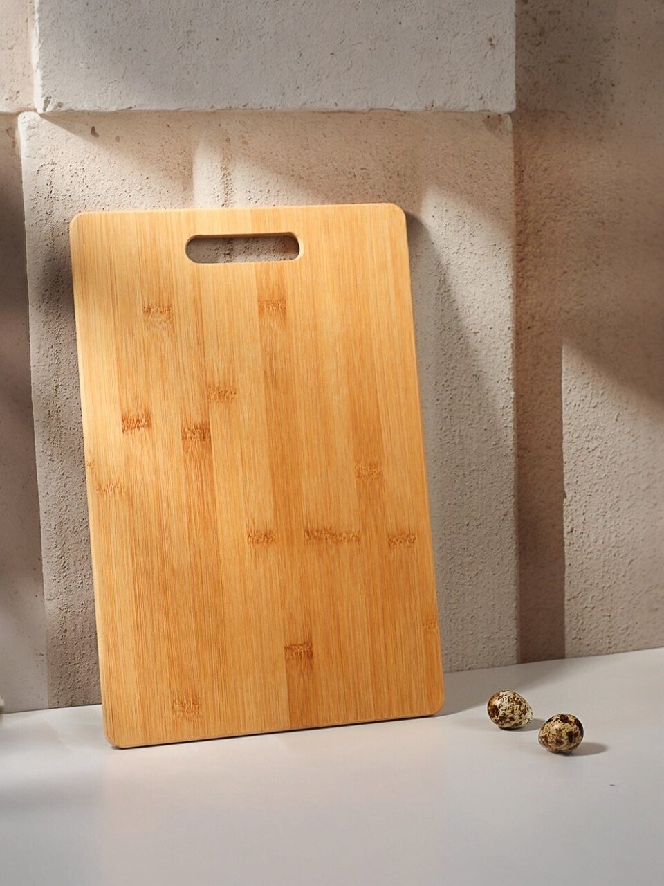 Ищете надежную и стильную разделочную доску для кухни? Бамбуковая доска Vetta 38х25 см с ручкой — идеальное решение для нарезки хлеба, овощей, фруктов, мяса, курицы и рыбы. Прочный натуральный бамбук, удобная прямоугольная форма, двухстороннее использование и подвесная ручка обеспечивают комфорт и долговечность. Легко впишется в любой интерьер кухни и станет незаменимым помощником.