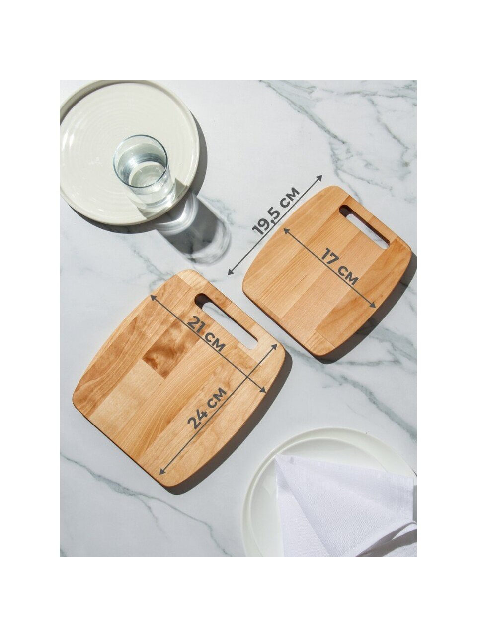 Для покупателей, ценящих экологичность и натуральные материалы, доски из березы станут отличным выбором. Материал не впитывает запахи и легко очищается, сохраняя привлекательный внешний вид даже при активном использовании. Отсутствие антибактериального покрытия делает уход за изделием простым и безопасным — достаточно стандартных средств для мытья посуды. Универсальность набора позволяет использовать доски и для приготовления, и для красивой подачи блюд на стол.
