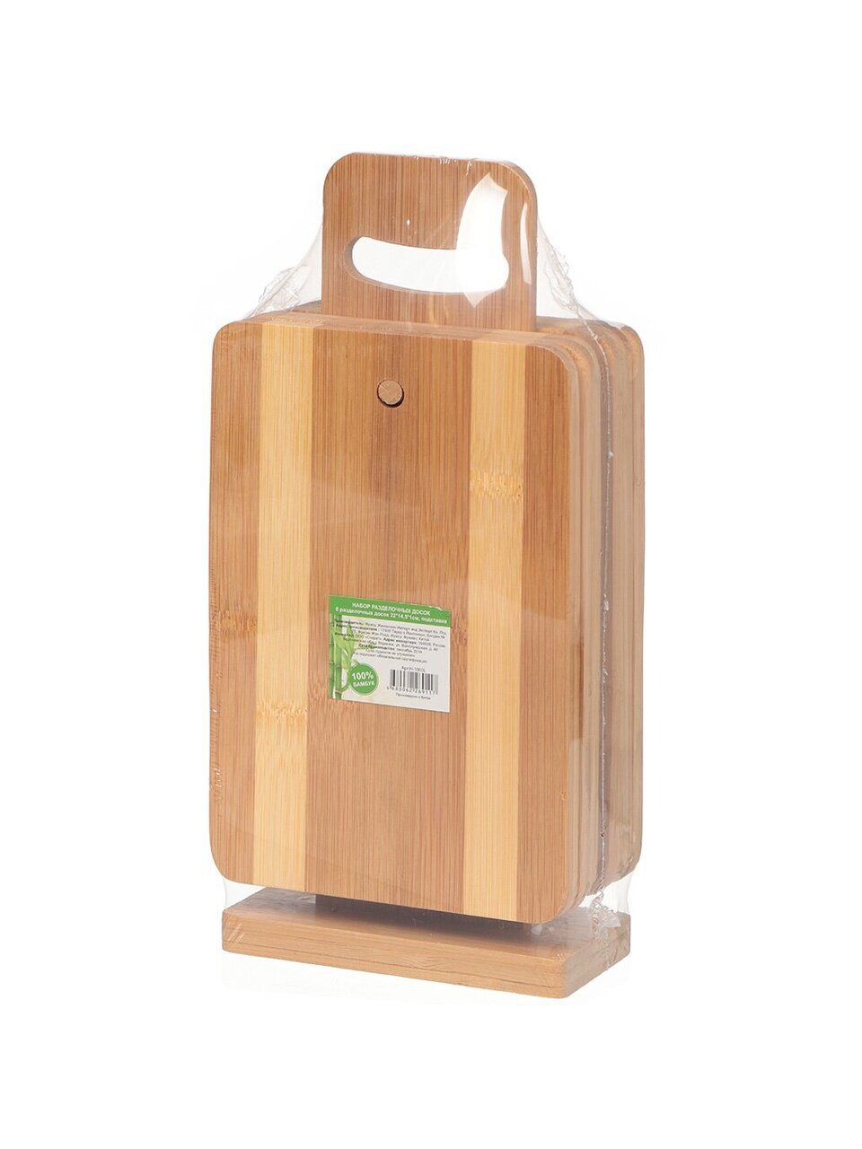 Набор разделочных досок - это незаменимые аксессуары на любой кухне. Они изготовлены из натурального бамбука, обеспечивающий длительный срок эксплуатации изделий. В отличие от других досок (пластик, бук или береза) данные предметы не только легко моются и не скапливают бактерии, но и не расслаиваются при регулярном использовании. Благодаря подставке ваши доски всегда будут на месте.