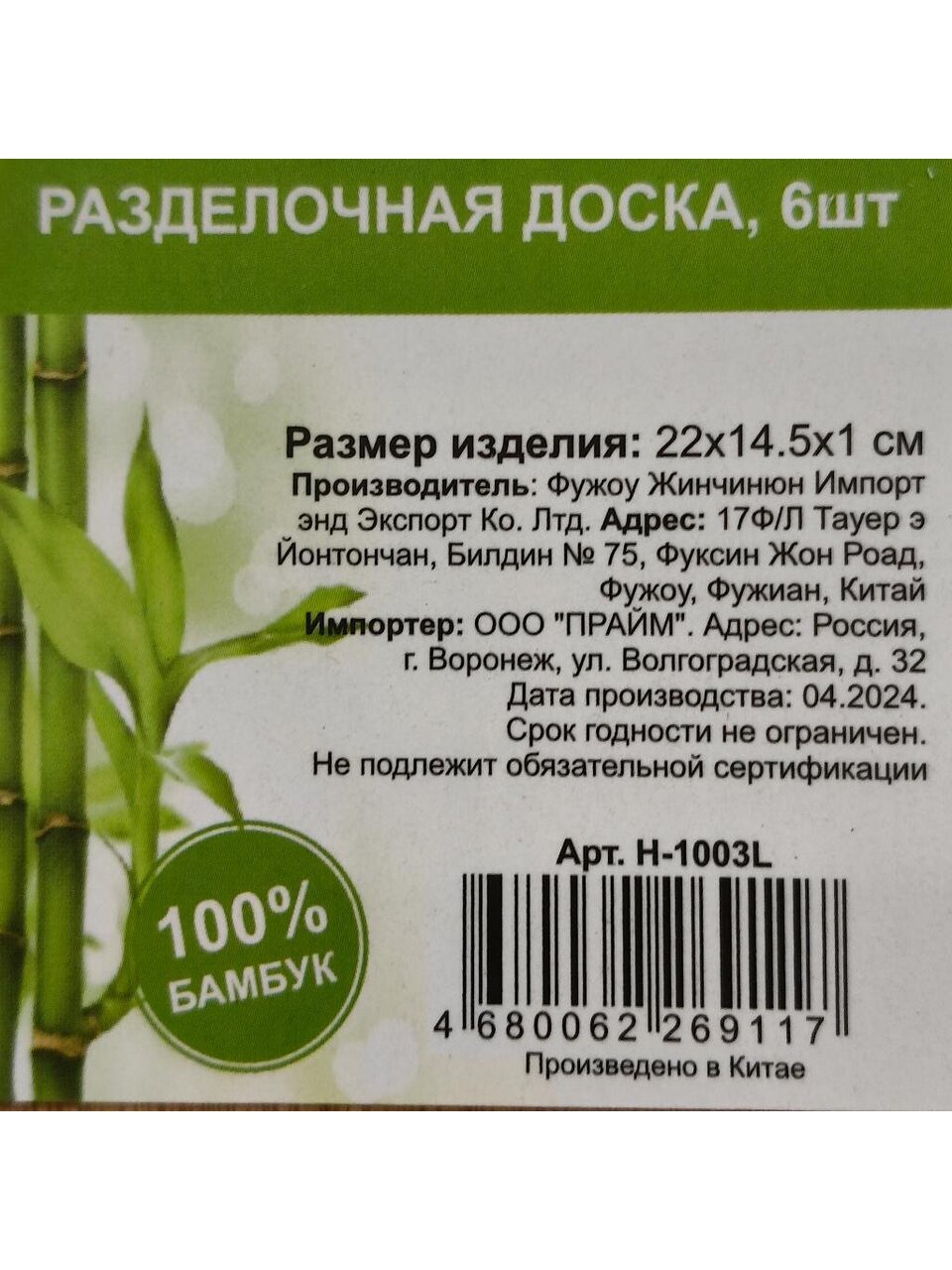 Вы можете приобрести «Доска разделочная бамбук, 22х14.5х1 см, 6 шт, с ручкой, H-1003L» и другие товары в нашем интернет-магазине в Старом Осколе по низким ценам и с бесплатным самовывозом.