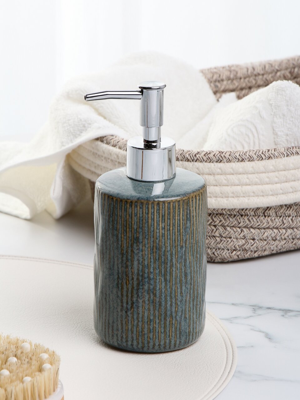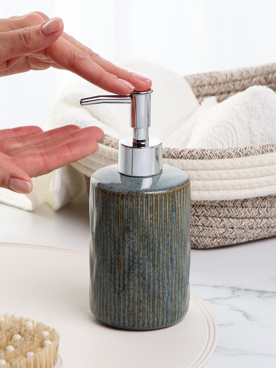 Дозатор для жидкого мыла, керамика, 7.3х7.3х17.5 см, голубой перламутровый, Y4-9840
