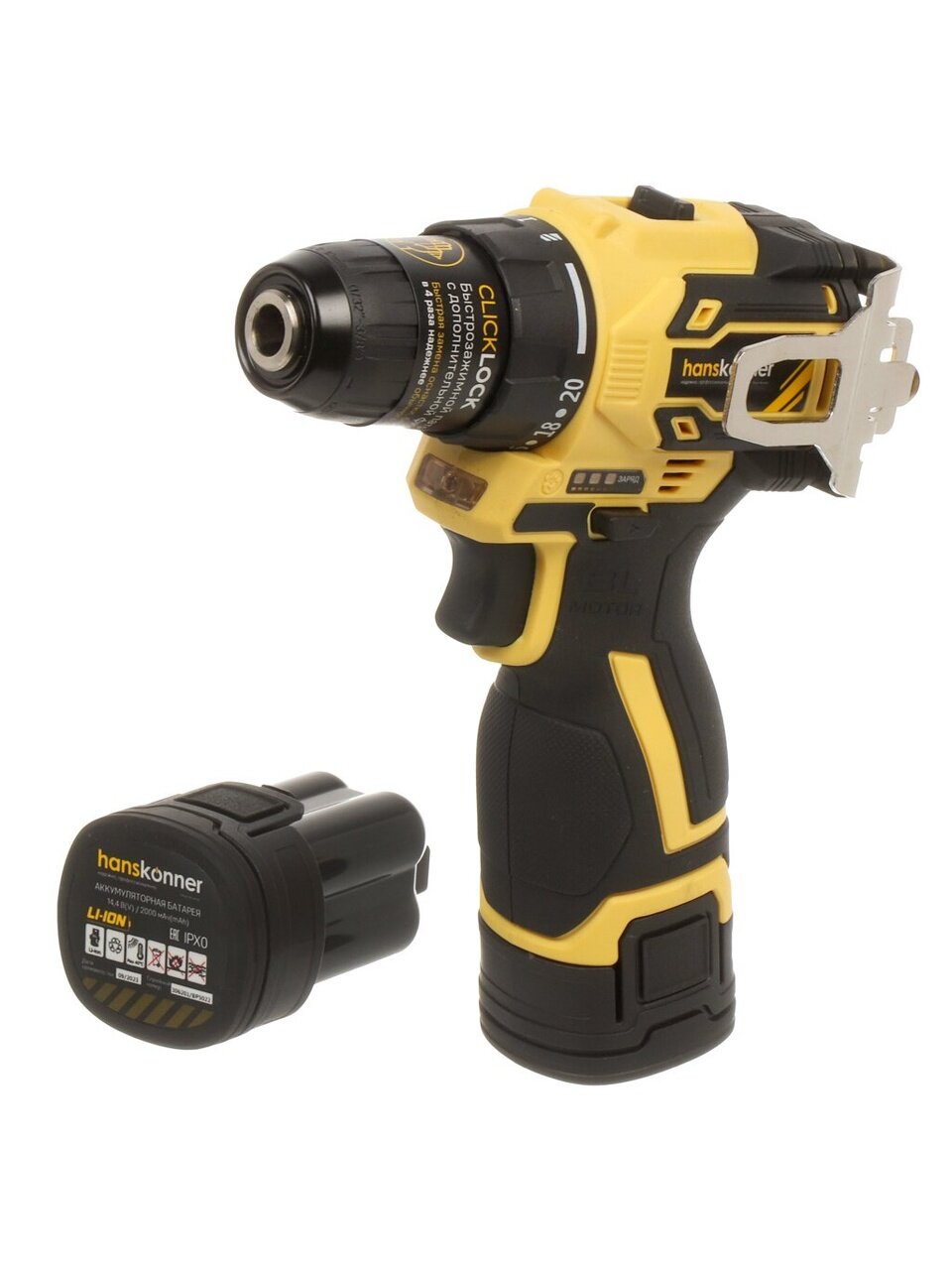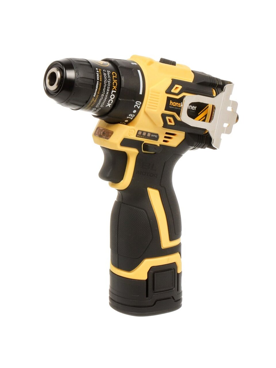 - Бесщеточный двигатель аккумуляторной дрели-шуруповерта Hanskonner обеспечивает снижение веса и размеров инструмента, повышение мощности и продолжительности работы, а также увеличение ресурса.