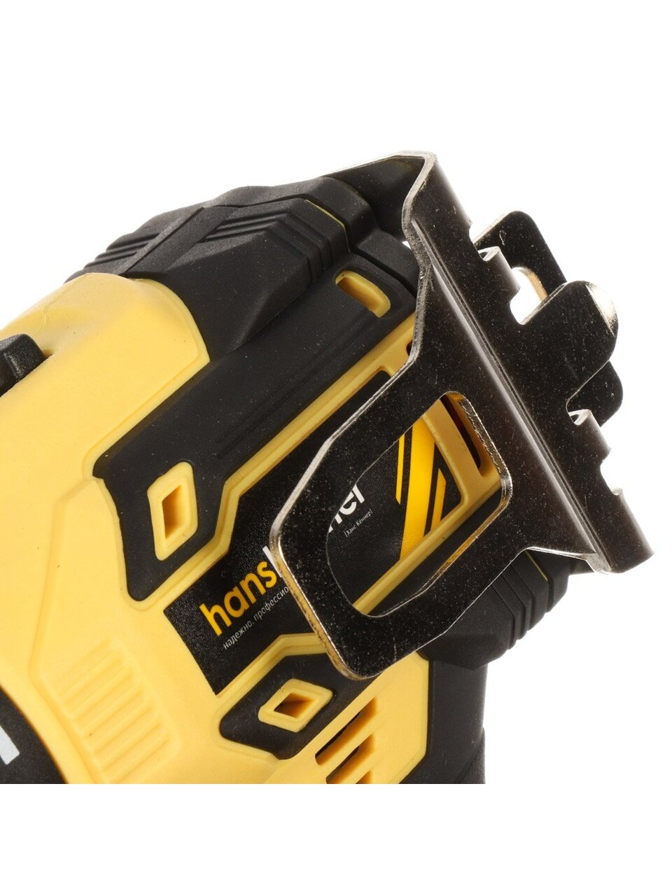 - Благодаря специальной скобе с возможностью установки как справа, так и слева, шуруповерт можно удобно повесить на пояс, обеспечивая его постоянное наличие под рукой.