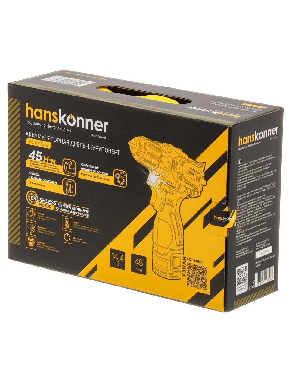 Вы можете приобрести «Дрель аккумуляторная, Hanskonner, PLATINUM HCD1645BLC, бесщеточная, 14.4 В, сумка-кейс» и другие товары в нашем интернет-магазине в Обнинске по низким ценам и с бесплатным самовывозом.