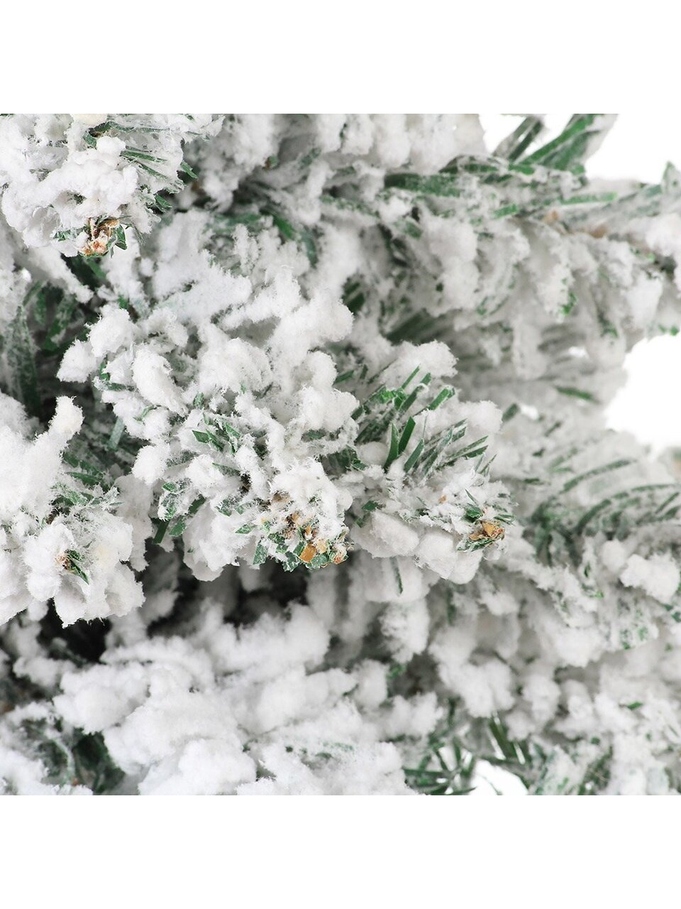 - Эффект настоящей заснеженной ели — реалистичная хвоя из ПВХ-пленки и белоснежный декор создают атмосферу зимней сказки