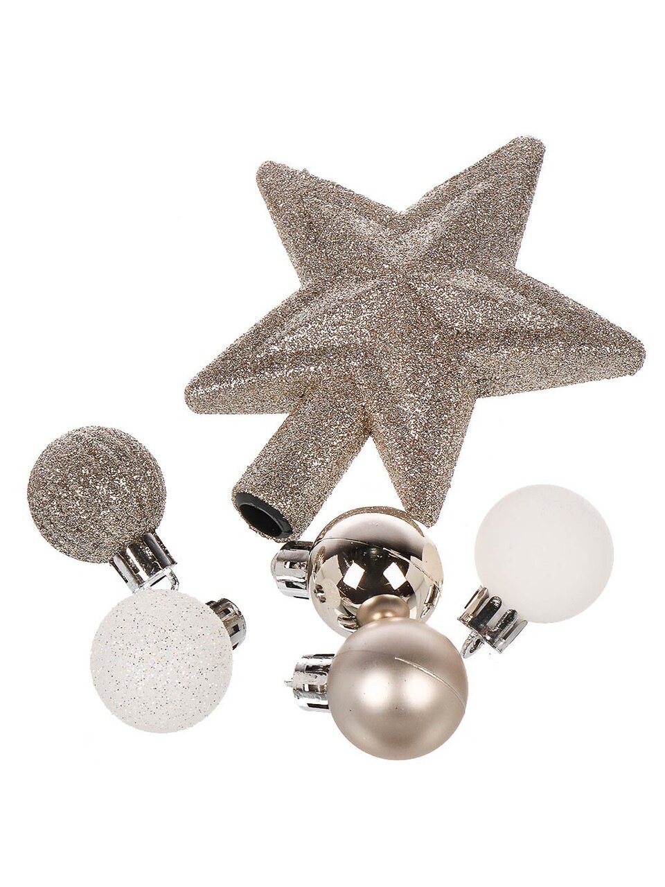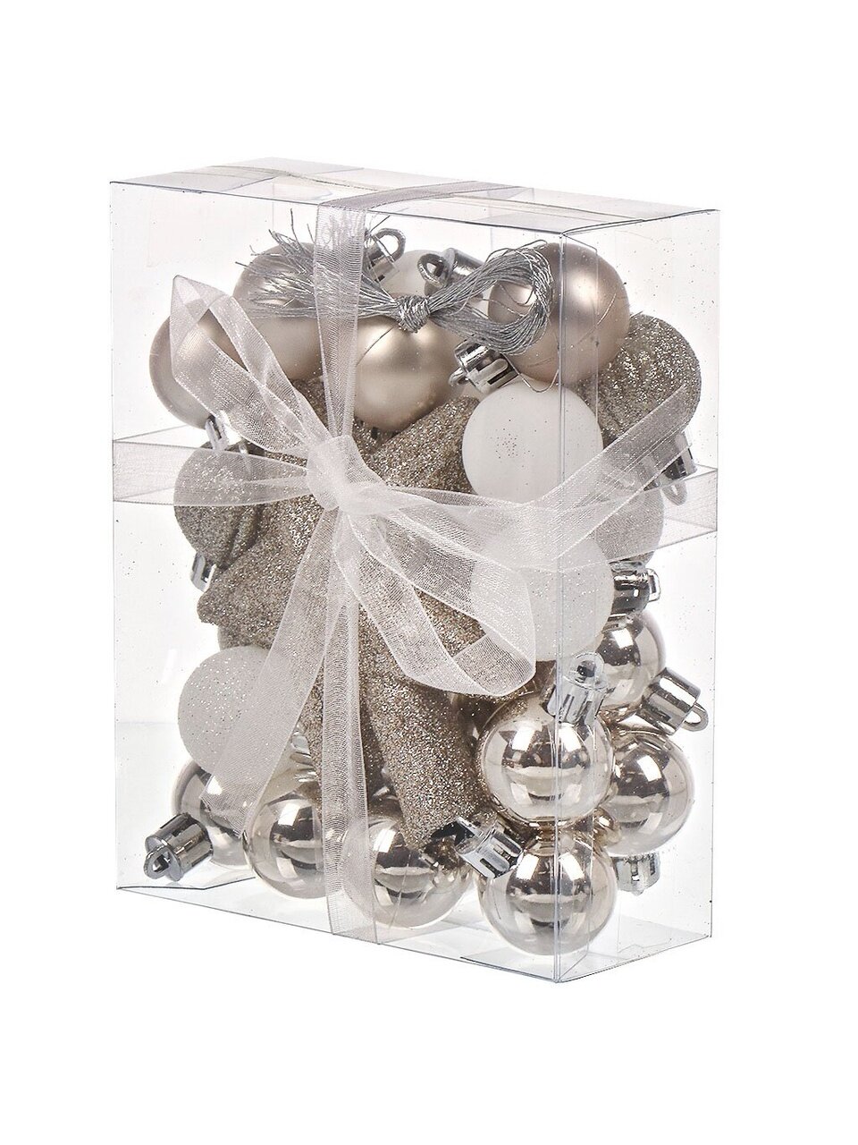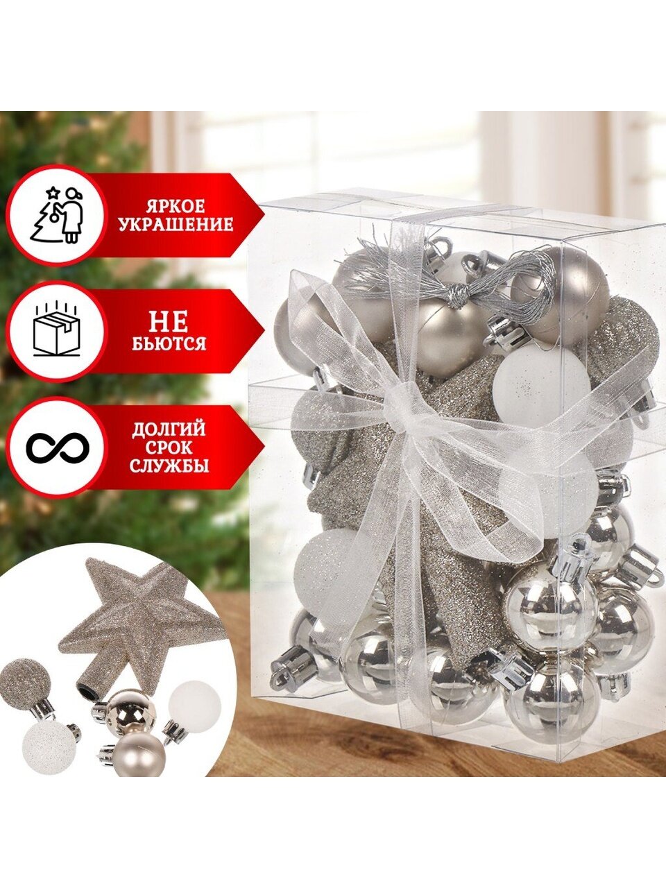 Набор елочных украшений 30 шт, микс: стильный декор для дома и дачи — небьющиеся шары и верхушки, серебристый микс, выгодная цена
