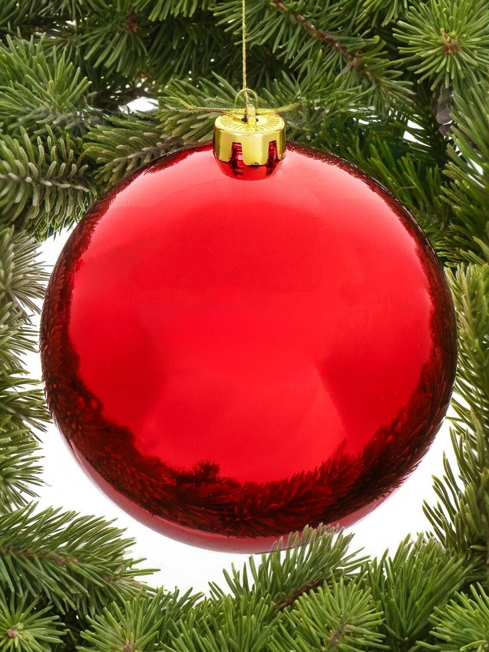 Большой красный елочный шар 15 см из небьющегося пластика — эффектное украшение для уличной и домашней елки. Безопасно, ярко, долговечно.