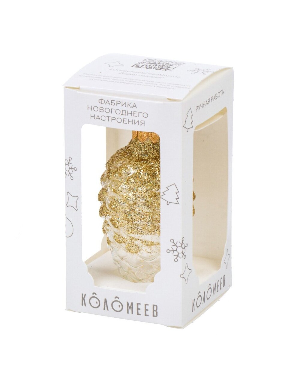 Игрушка выполнена из стекла, имеет высоту 8 см и поставляется в индивидуальной коробке для безопасной транспортировки и хранения.