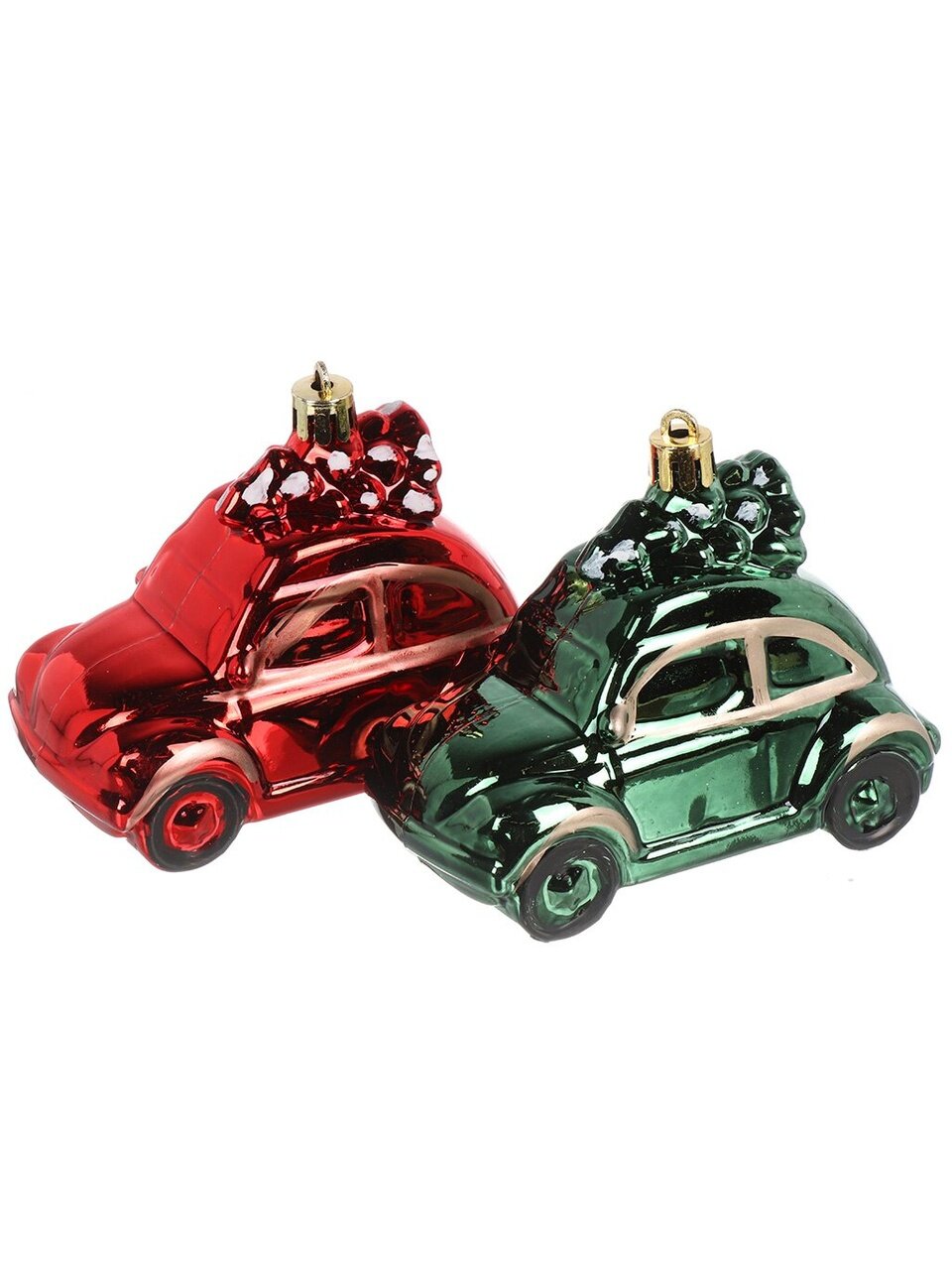 Яркий набор елочных украшений Машинки: 2 шт., небьющийся пластик, 10x7.5 см, для дома и улицы — идеальный подарок и защита от случайных падений.